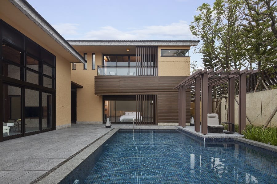 經由專屬大門方可入內的獨棟泳池Villa別墅區,共有6間,不僅間間寬敞舒適且都設有私人泳池、交誼廳、溫泉湯池等獨享設施,家庭旅行、閨蜜出遊皆適宜。