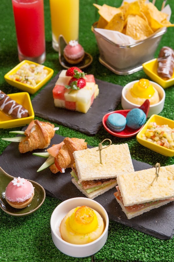 此外,酒店行銷及餐飲團發揮創意,在室內或戶外餐桌上,鋪好小草皮,擺放鹹甜兼具的甜點輕食,營造出綠地野餐的輕鬆FU,命名「野餐下午茶」。兩人份下午茶可品嘗「咖啡閃電泡芙」、「柚香檸檬蛋糕」等8樣小巧精緻的甜點輕食,共享甜蜜午後時光。
