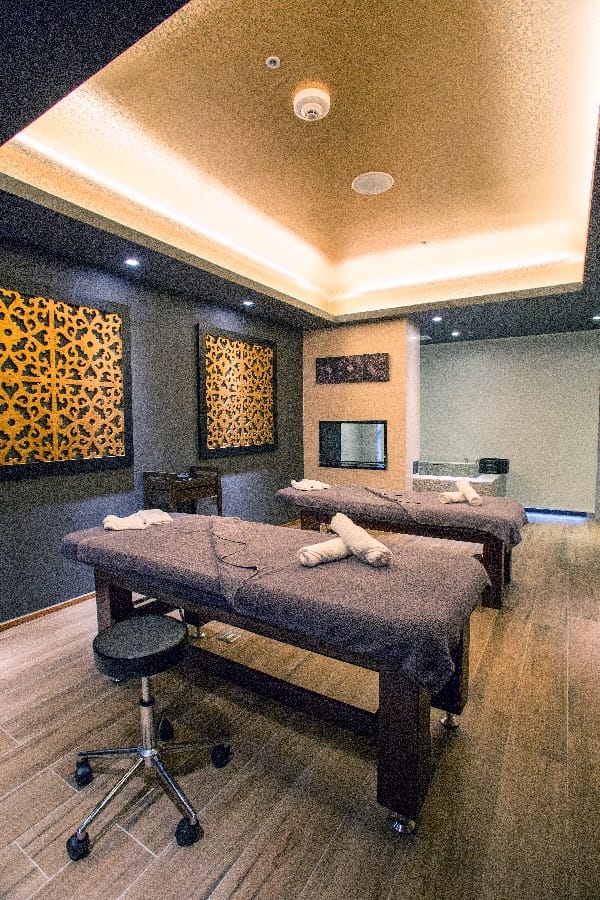 絕不能錯過酒店的SPA療程,以多肉植物「桃美人」、「千佛手」命名的兩間芳療室,典雅靜謐。SPA選用的香氛保養用品,為泰國HOME SPA第一品牌HARNN HERITAGE SPA,所有療程皆以米稃油為基底,富含維他命E並滋潤肌膚。