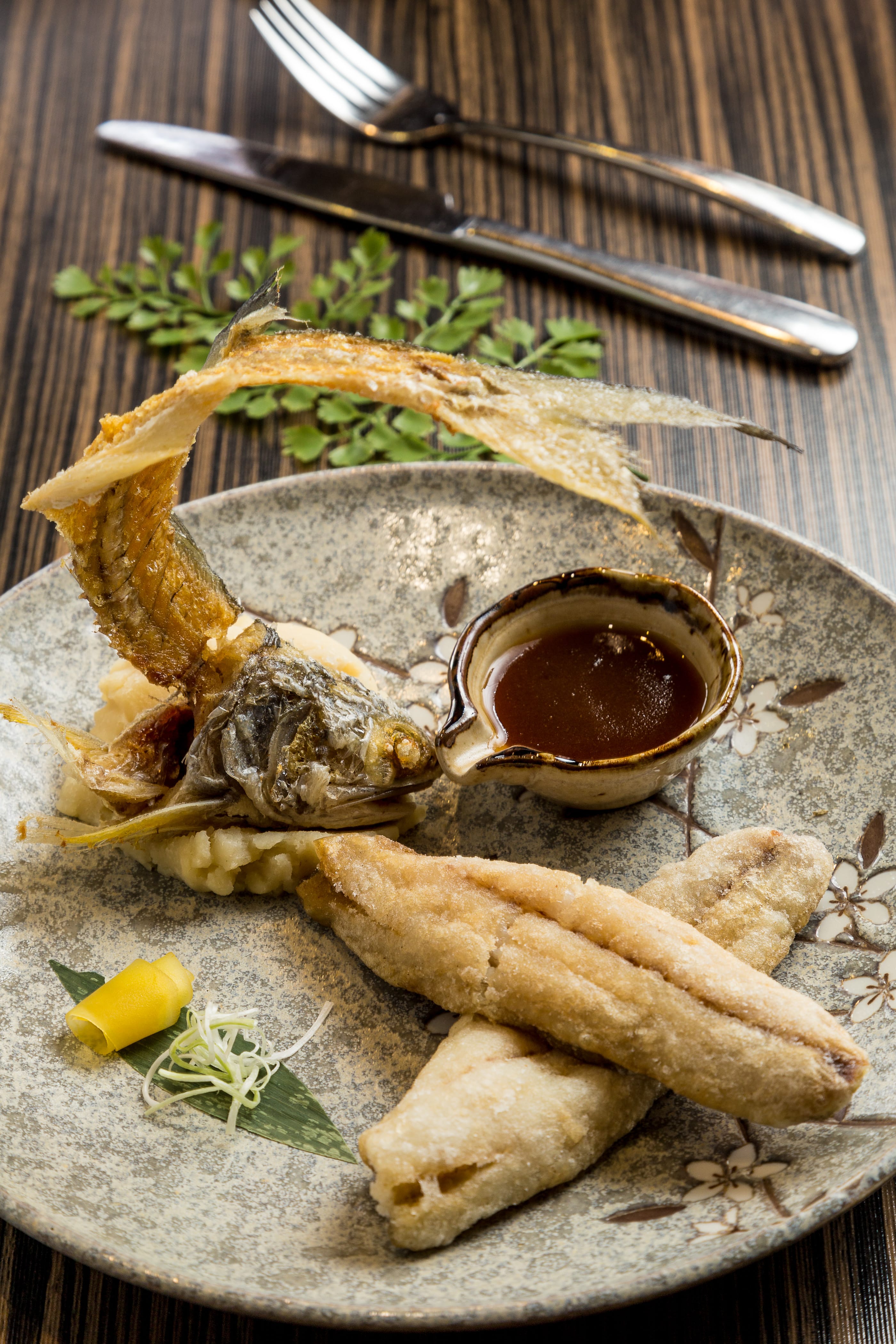 師承帥府名菜的大帥竹午魚,選用整隻午仔魚炸到魚完全酥脆,連魚骨都可吃,醬汁則是另一條午仔魚熬煮,原味吃或沾醬汁,各有巧妙風味。另一道東北名菜,以豬膝筋紅燒至入口即化的「大帥府傳燉虎掌」,常吃對筋骨特有幫助,再飲上一杯漢卿趙四玫瑰醋飲更養身。