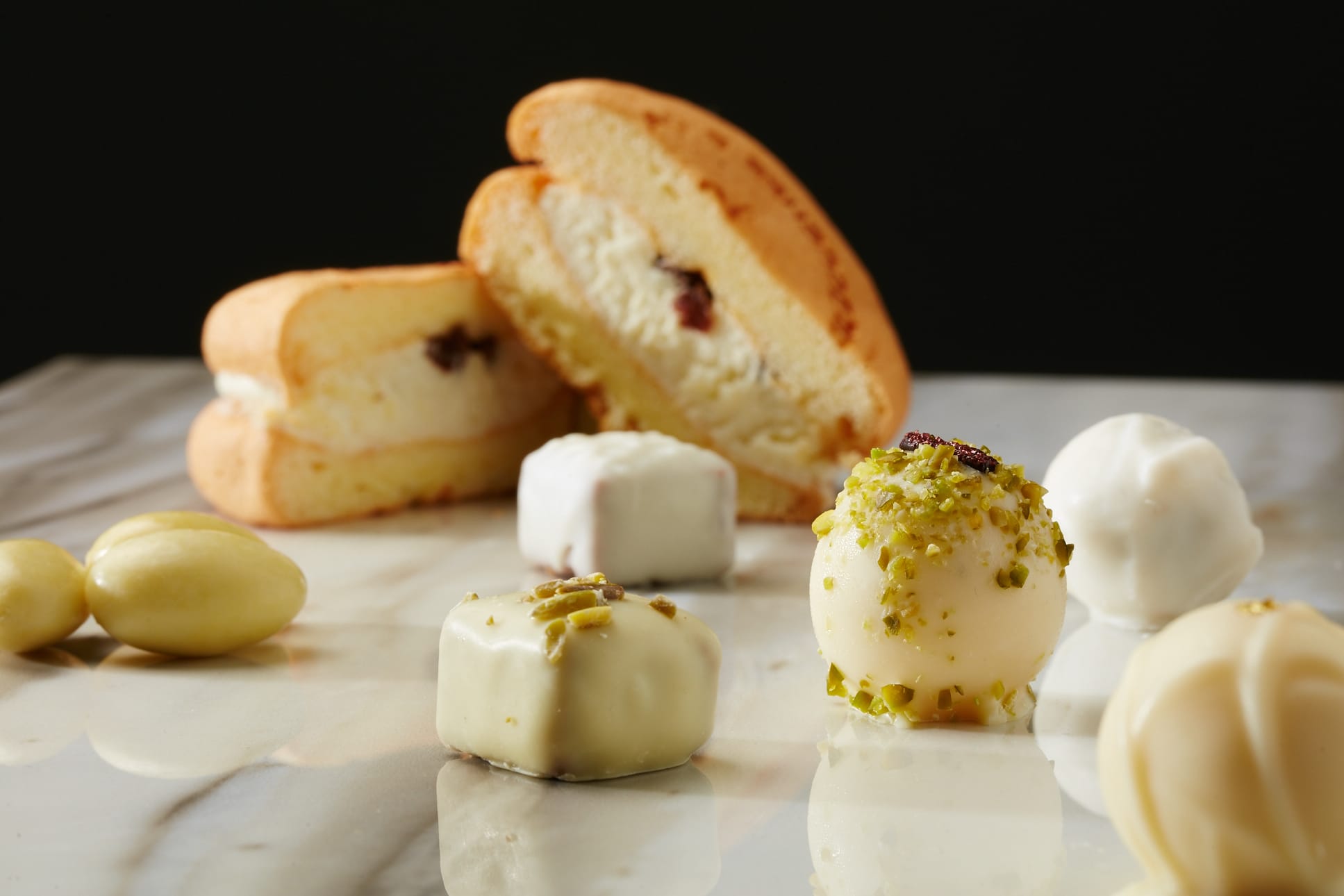 當白巧克力本身成為甜點的內餡時,也能誘發出迷人上癮的口感。柔軟的炙燒蛋糕,夾上如初雪般細緻的白色巧克力,兩種不同質地的組合,讓每一口都是驚喜,不知不覺就陷入了甜蜜迴圈。