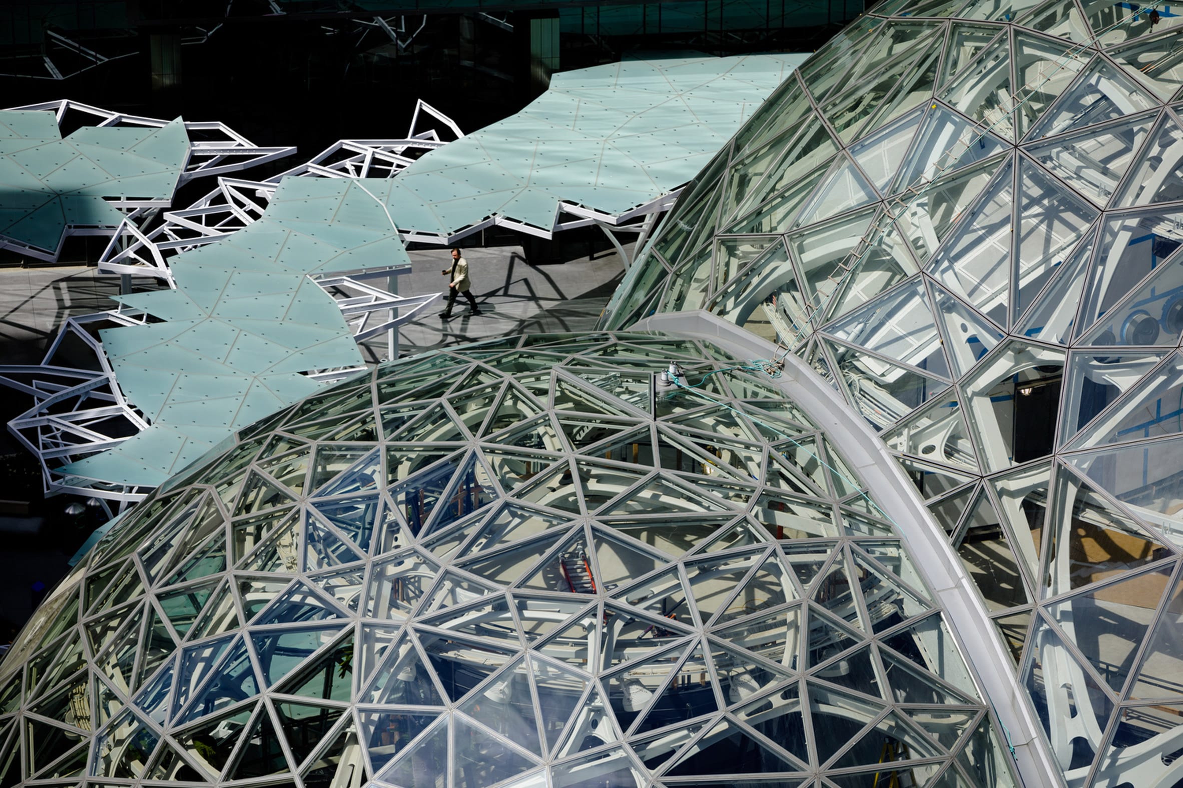 陽光從透明球體的頂端灑落,四周被4萬株植物所包圍,身在其中會誤以為已經離開地球,漂浮在光年之外的宇宙。而在外頭觀望的人們,對於這三個透明球體一樣懷抱著未知想像,與周遭的車水馬龍、高聳大樓相比,它自成一格猶如都市裡的世外桃源。