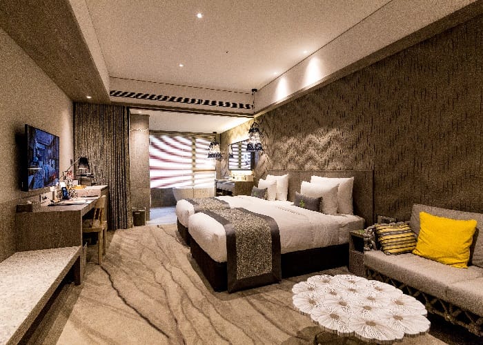 139間客房,設計五種風格客房,讓人一眼就愛上。以石、木、藤為設計語彙,計有以中國及日本禪風為意境,予人沉靜優雅的「東方禪」,如置身熱帶雨林裡的「森林風」,譜出中東閒野獨特韻味的「沙曼風」,如詩似畫、悠遊閑得的「漱石風」,探索時尚紐約下東城風格的「樂岩風」,五種風格任由旅人所喜好,感受不同的氛圍情境,更貼心提供Handy智能手機,以備房客不時之需。此外,沒想到在都市中還可以泡湯!另設有3間獨立湯屋,仰心湯屋引進科技溫泉機結合工研院礦晶所淬鍊的白磺湯,在檜木芳香裡體驗湯泉的溫潤膚觸。
