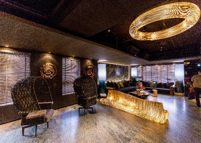 來到4F迎賓空間,水晶質礦岩所雕砌而成的大面水晶光牆超吸睛,最特別的是飯店內每一空間皆擺設由首位亞洲區獲得Maison & Objet年度設計師,來自菲律賓Kenneth Cobonpue設計師的創作家具,運用竹、藤、麻等自然素材創作,饒富動感的線條,為場域注入獨特魅力。像是以椰子葉作為椅背的Kenneth座椅,就是4F阿樹私房菜餐廳的一大亮點,以雲彩為幕、草地為席、日光植生牆為景,在這裡享用經典粵菜、特色調酒;下午茶段,提供森之午茶,體驗如同身處叢林間用餐般的閒適野趣。