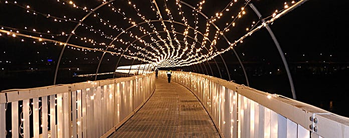 南投縣長林明溱說,新啟用的浪漫情人橋串連沙雕園區和主燈區,白天可以看花海、晚上可以看花燈,是取景最佳亮點。更令人驚豔的是民眾站在浪漫情人橋上,可以看到南投吉祥物「酷比熊」,也能看到巨大的狗腳印在花海中,歡迎大家來賞燈、賞花。
