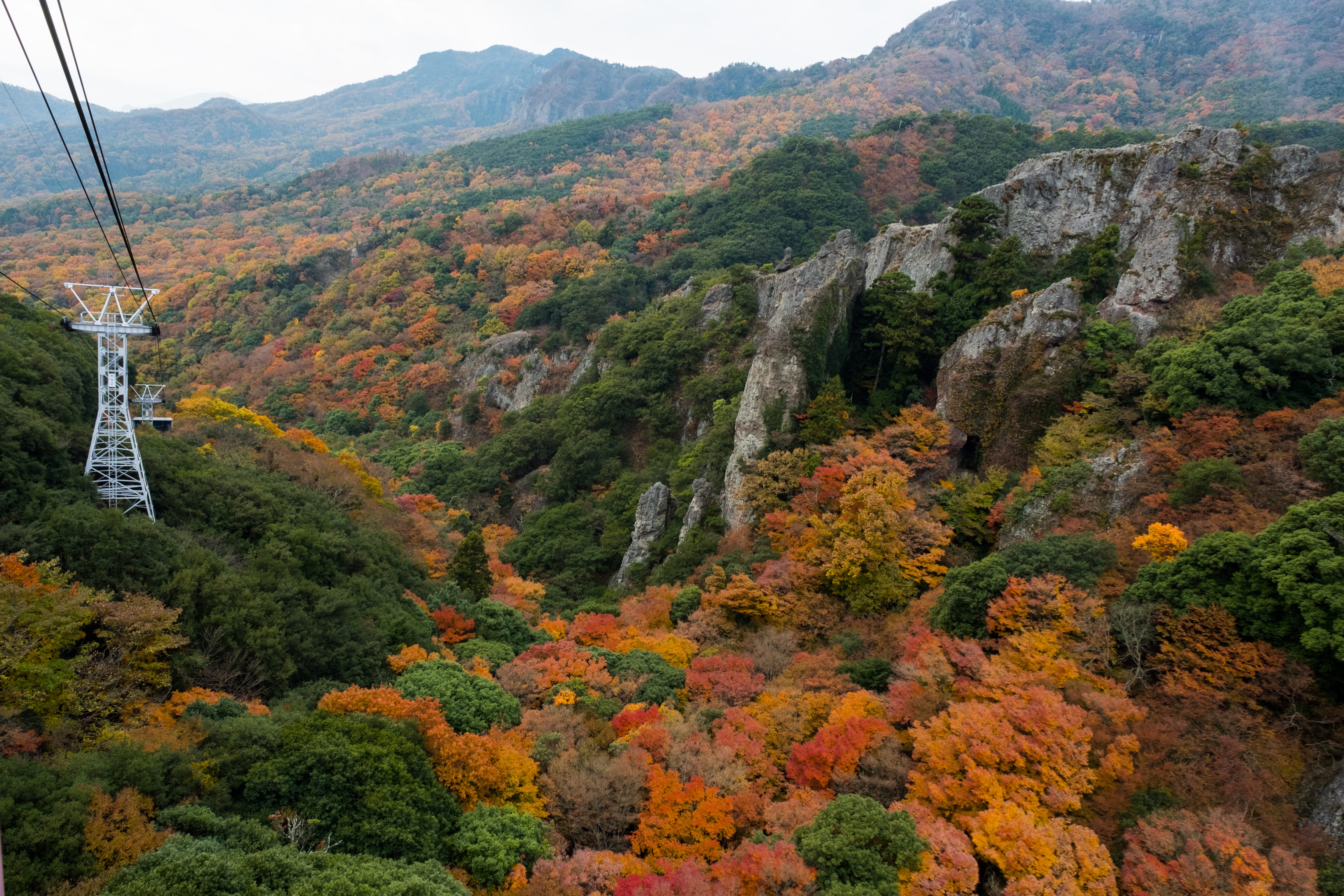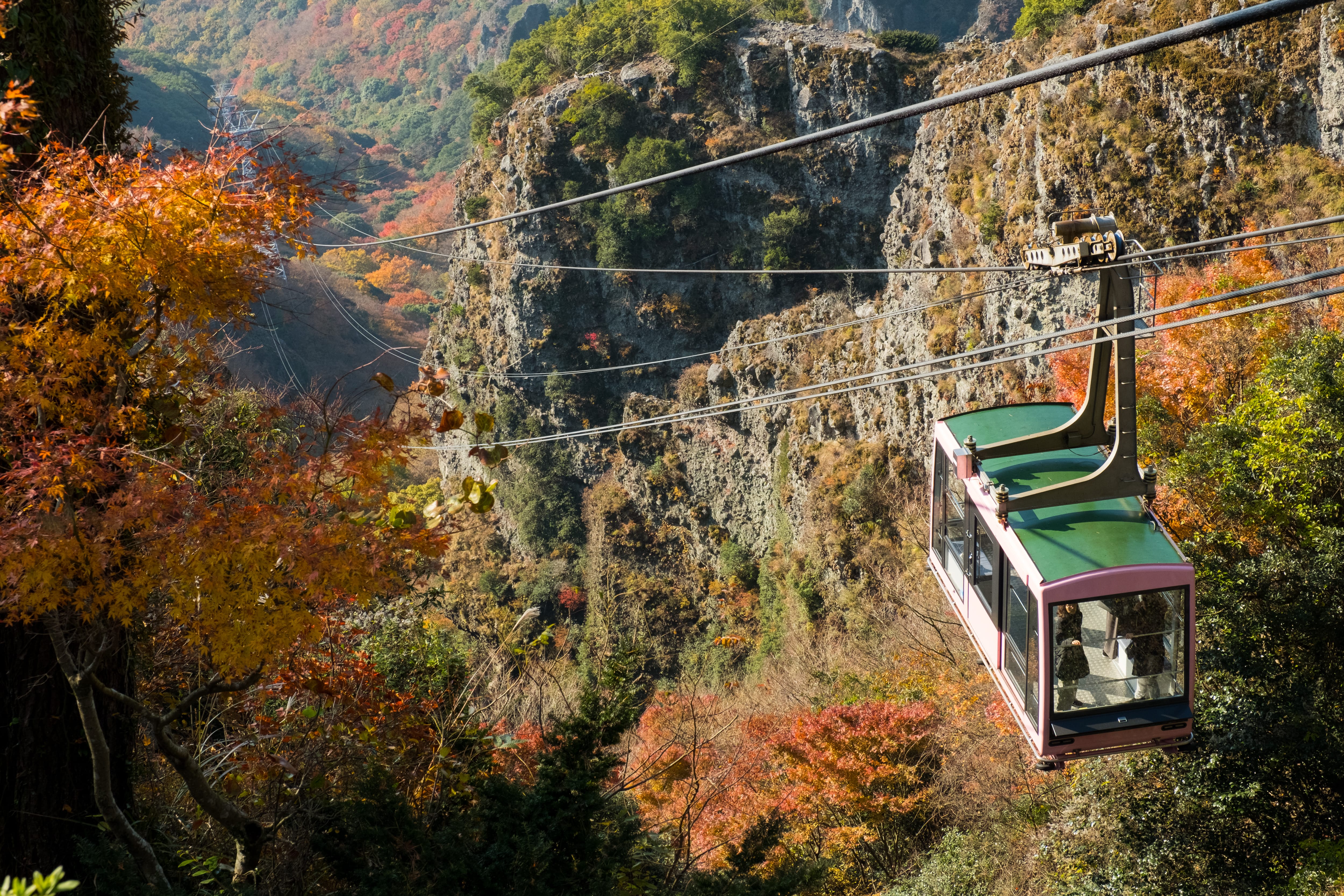 寒霞溪是由於火山活動而產生的溪谷,位居小豆島中央地區。約在1300萬年前因火山運動岩石受地殼變動和侵蝕影響,造就高聳斷崖和奇異岩⽯群的絕景,也是日本三大美麗溪谷之一,搭乘纜車來到寒霞溪山頂,除了可遠眺瀨戶內海一望無際的風光,春天新綠、夏天深綠、秋天楓葉以及冬天的雪景,都能看到寒霞溪四季不同的美景。
