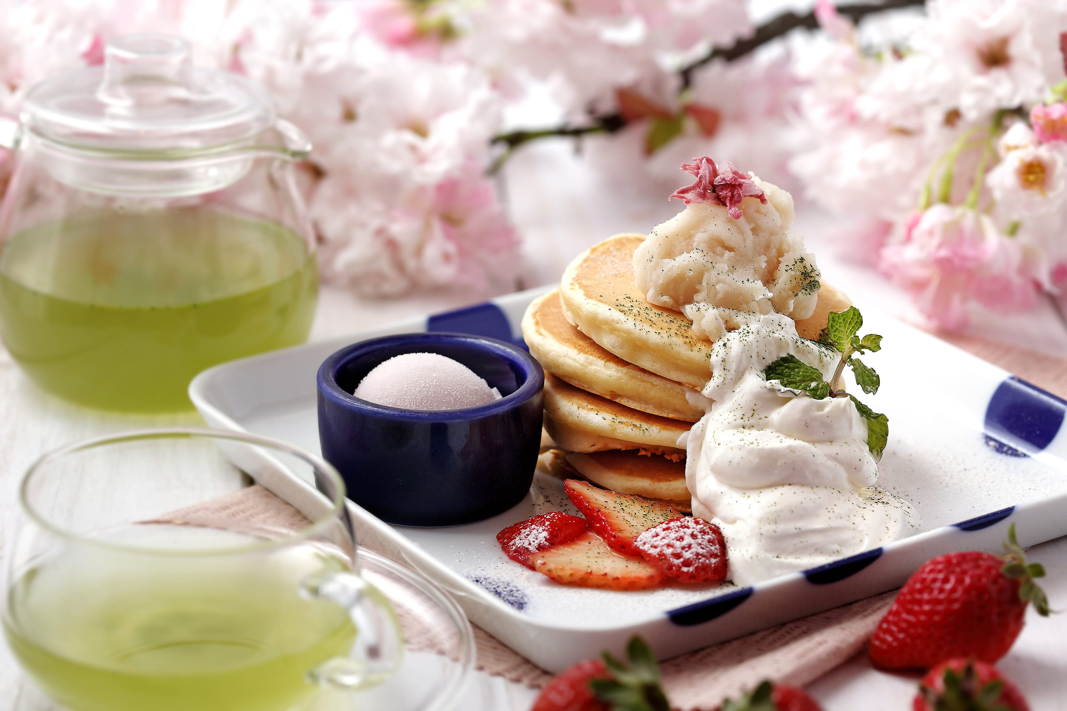 自古至今,關於櫻花的和歌、俳句與故事多不勝數, 人人皆知櫻花的美。 從櫻花樹下的賞櫻延伸至以櫻花為盛宴的懷石料理, 彷彿春季就該處處是粉嫩櫻花。有鑑於此,來自東京的「 杏桃鬆餅屋」也期待櫻花的美能傳達至台灣人的心中, 於是推出富含春季櫻花印象的櫻花鬆餅。 將獨特配方的麵糊煎至挑戰極致的金黃色澤,厚度1公分的鬆餅被層 層堆疊而起,再以粉嫩色澤的櫻花風味白鳳豆泥、 鹽漬櫻花瓣作為清新搭配, 而一旁獨特的櫻花醬手工義式冰淇淋具酸甜的櫻花滋味, 除了是其他店家少見的美味,更是春天寄語的美麗延伸。