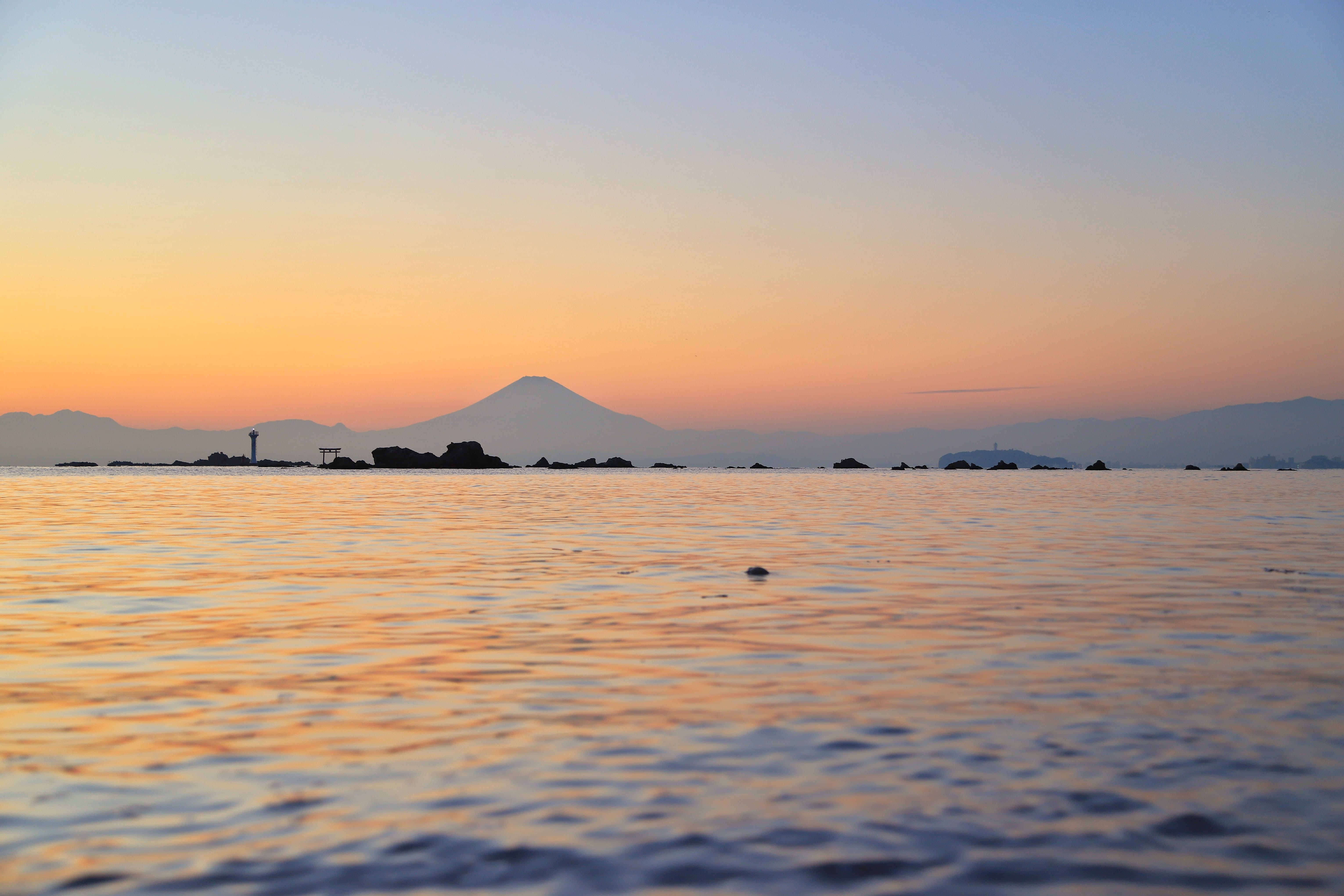 ?海-「真名瀨海岸」 愛上矗立於海與名島鳥居後方的富士山