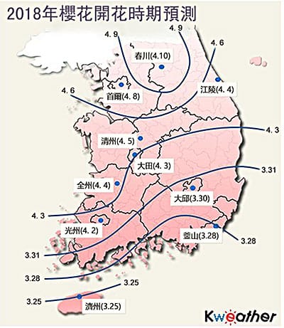 根據Kweather的報導, 2018年的櫻花季將於3/25從最南端的濟州島開始,南部地區預計在3/28~4/4,中部地區4/3~10,首爾則是約在4/8左右能看到花朵於枝頭綻放。櫻花全盛綻放時期估計為開花後一週,為提供更多韓國賞櫻資訊,韓國觀光公社與相關單位將舉辦系列的免費講座,分享最新最夯的賞櫻秘境!講座依時間順序如下: 3/17於台中逢甲大學舉辦【韓國賞櫻遊玩全攻略】、3/23於Korea Plaza舉辦【濟州春季講座】。