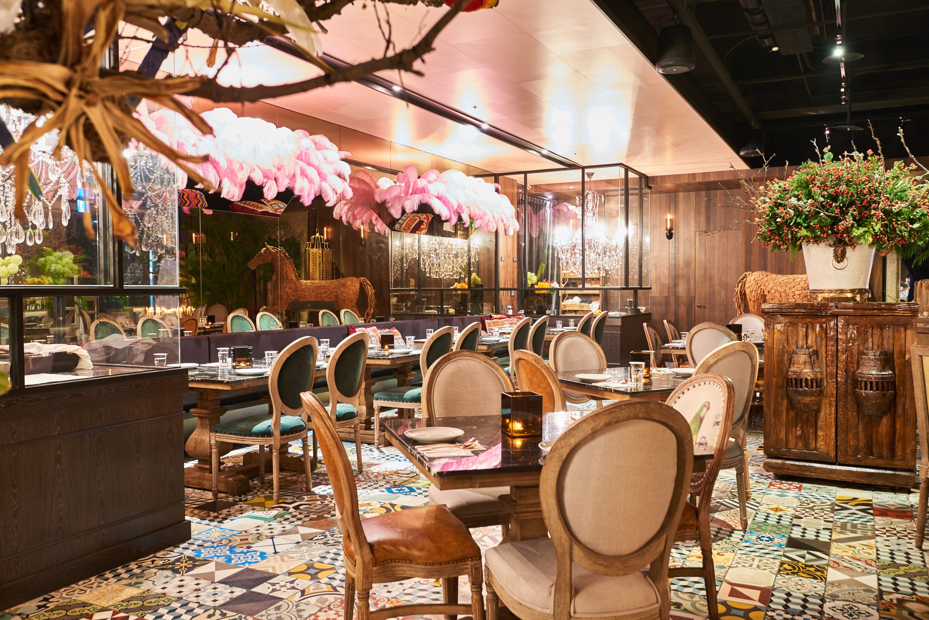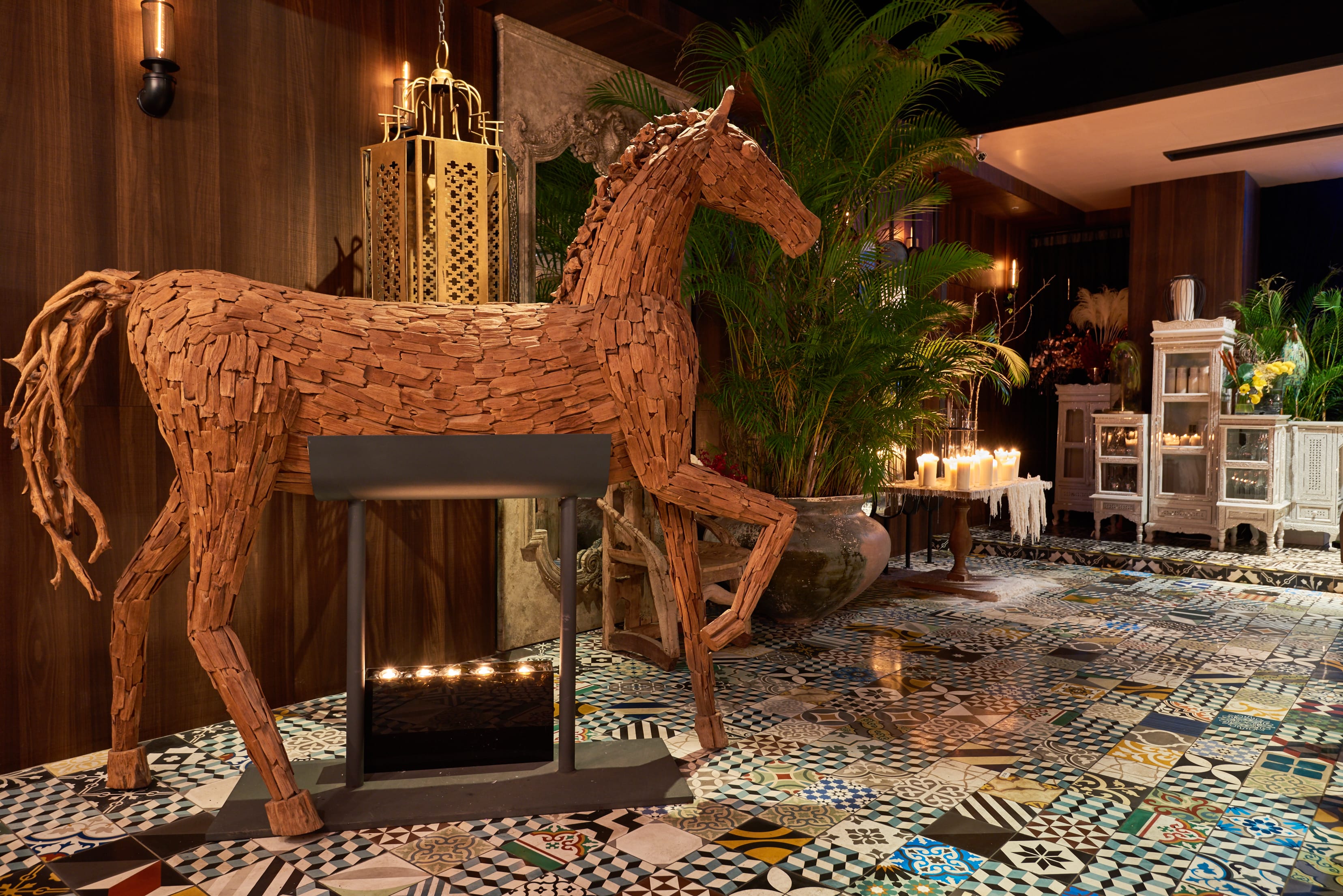 Woo TAIWAN餐廳空間以”Rustic Modern”為核心概念進行設計,從地板的花色瓷磚到空間中沒 有停過的各式動物雕塑及各式古典家具擺設, 搶在美食上桌前就先提供了所有賓客一場精采的視覺饗宴。