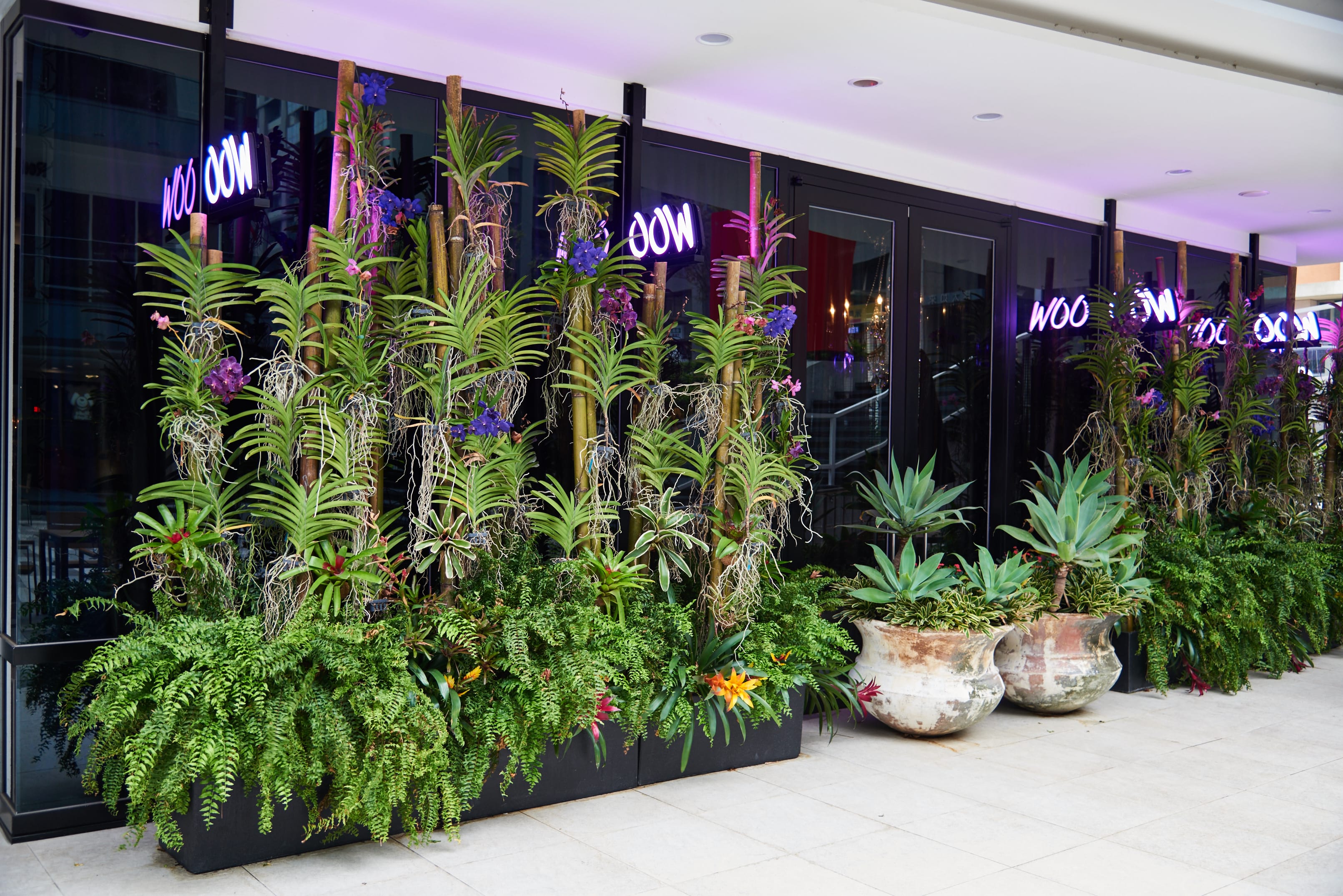 除了視覺之外,Woo TAIWAN還有一般泰式餐廳絕對沒有的一項堅持,那就是滿室生 香的大量自然花卉。為了移植泰北自然原味,品牌聘有專業的花藝團 隊針對全台餐廳每周進行更換,每七天就更換一次全新風格的新鮮花 藝植栽布置,配合上南洋熱情的蠟燭香氛,視覺、味覺、嗅覺三位合 體將泰北強烈衝突的風格引進台灣,讓來到了Woo TAIWAN的顧客無不頻頻發出讚嘆「Woo」的聲音。