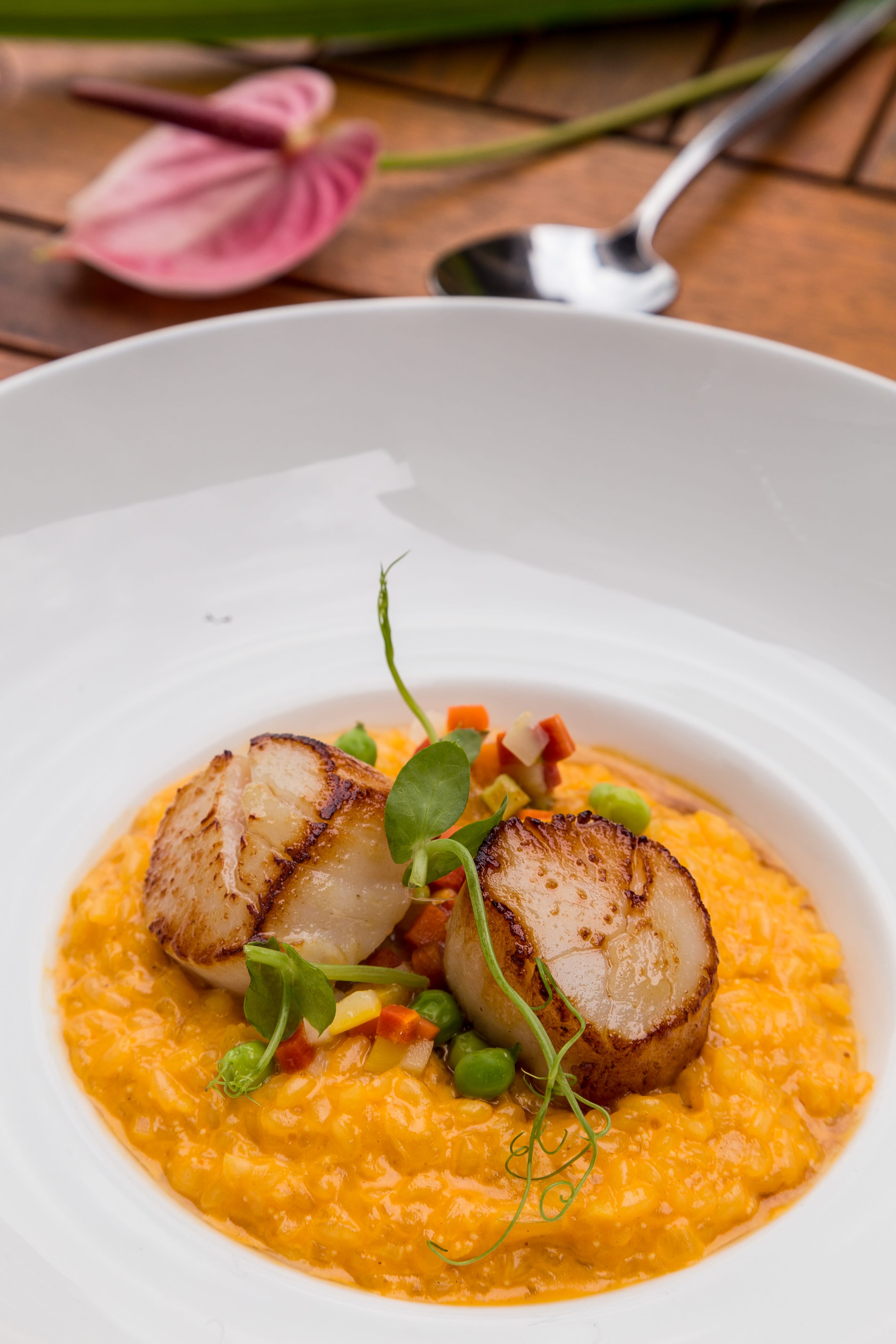 其它輕食料裡還有經典的胡蘿蔔海膽燉飯佐香煎北海道干貝,選用台灣米墩煮,濃縮了海膽醬、白酒、馬斯卡彭起司、等級高的帕馬森起司和鮮奶油,奶香十足、完美濃稠度,北海道干貝更是畫龍點睛,海之鮮味油然而生。