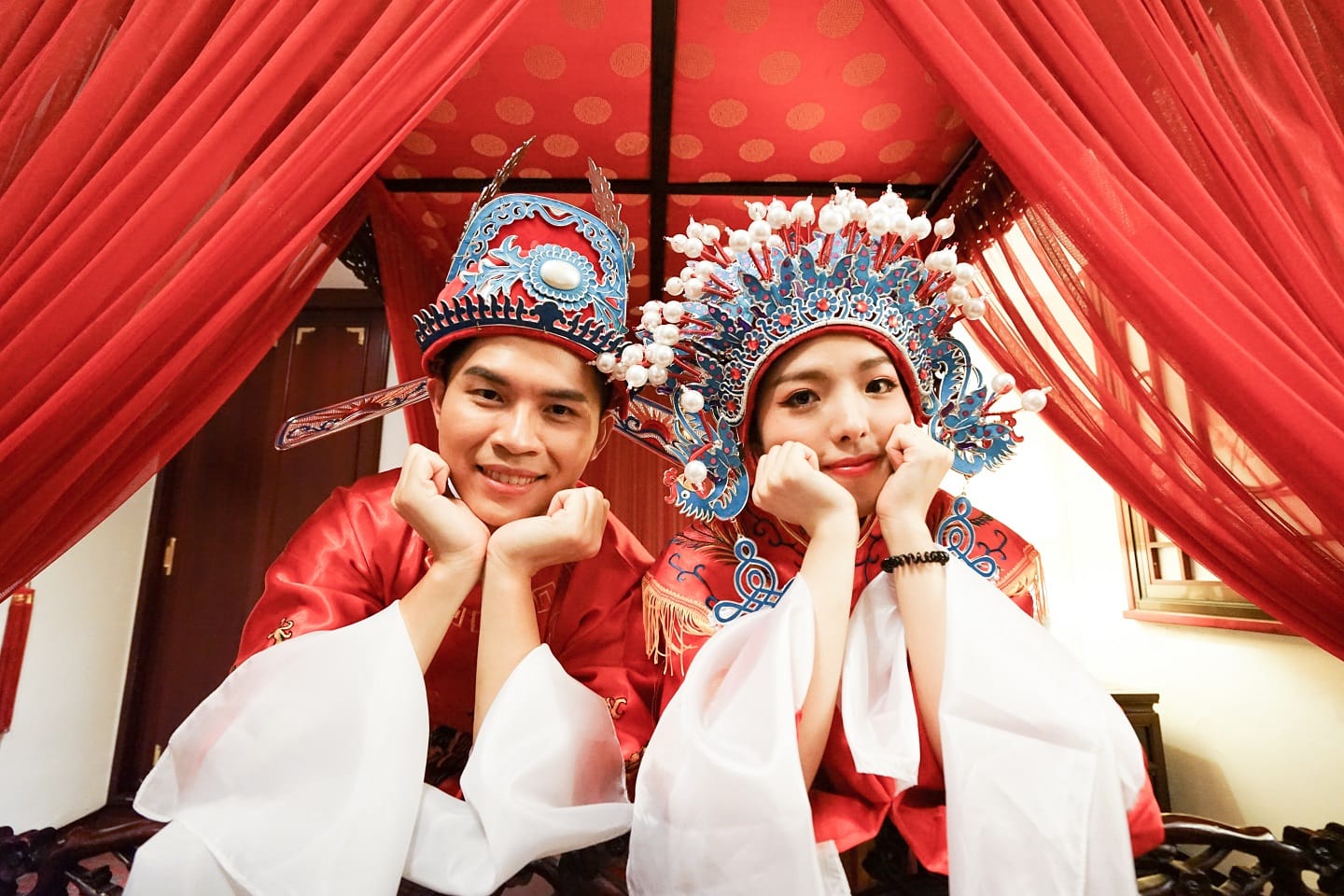 1972年開幕的六福客棧,充滿懷舊風味的「古典式廂房」一直是國內外旅客爭相詢問的房型,4月起入住「台灣文化輕旅住房專案」加價NT$488即可升等每日限量一間的「古典式廂房」,廂房以中式結婚禮俗做布置並提供中式傳統結婚禮服,旅客可以換上大紅色的新娘服鳳冠霞披和新郎服狀元袍在廂房裡拍照打卡,彷彿走進時光隧道來一場復古巡禮!