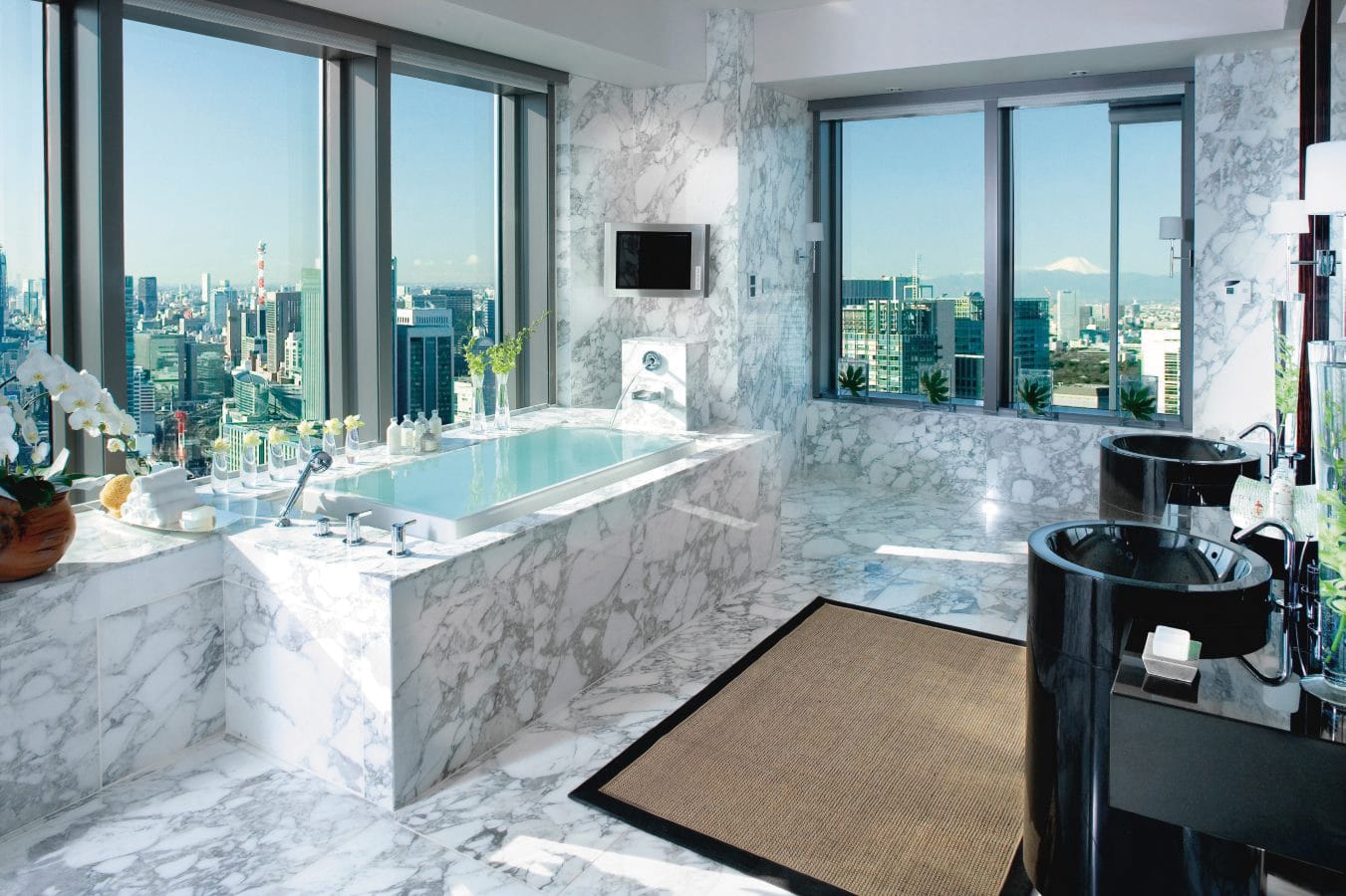 當夕陽透過落地窗灑進金黃色餘暉,半坐臥在長型沙發閱讀一本好書,也許捧杯紅酒享受晚餐前的小微醺美好,眼前是櫛比鱗次的城市高樓景觀,遠方的富士山景清晰得令人驚豔,腳下的繁忙街道川流不息,在此品味一刻極上東京味。