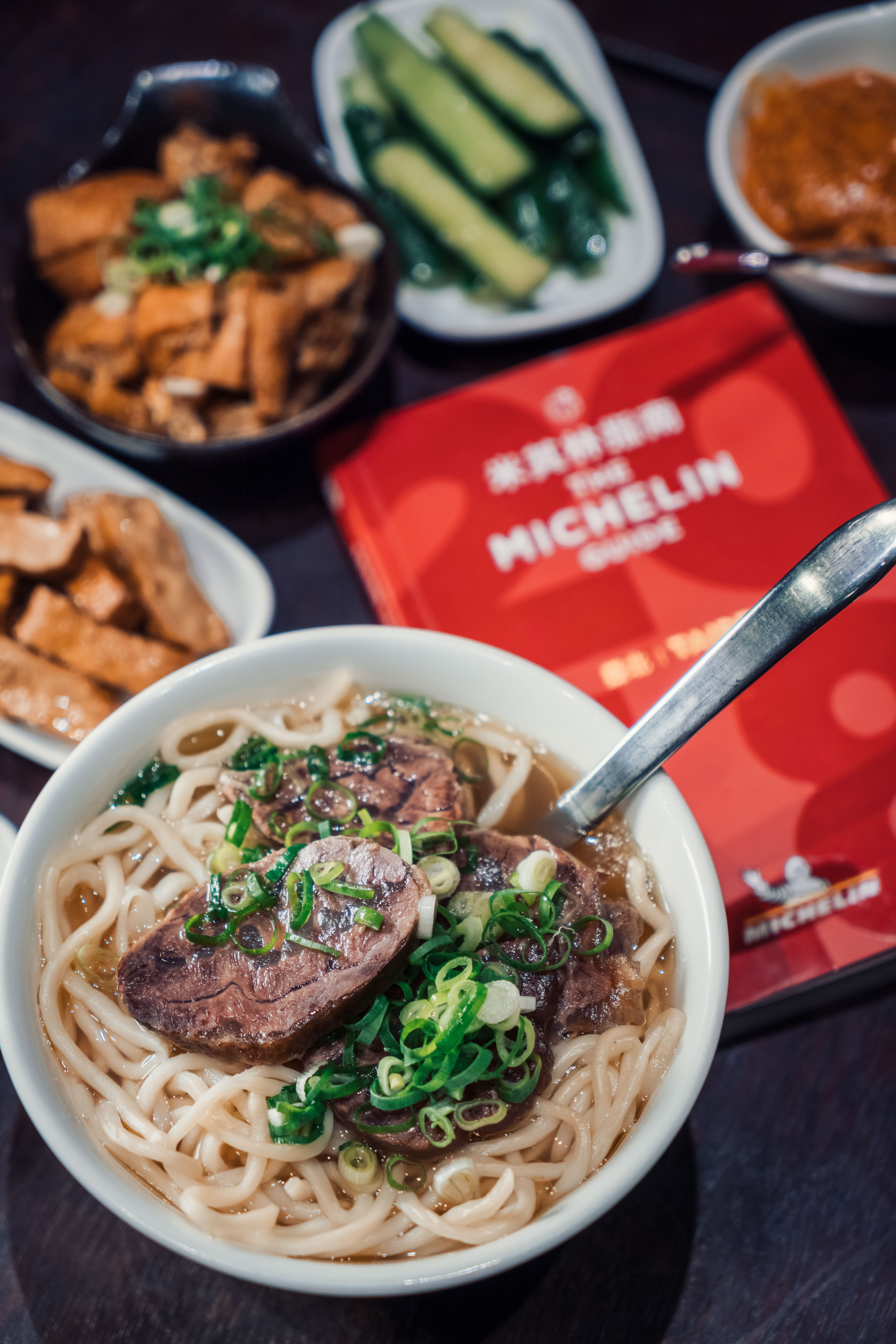 一邊品嘗入榜「必比登推薦」的牛肉麵,一邊跟我們分析米其林來台的優劣,往門口一看,絡繹不絕的旅客已排起長長人龍,或許星星的意義在於,讓更多人能夠認識這片土地吧!