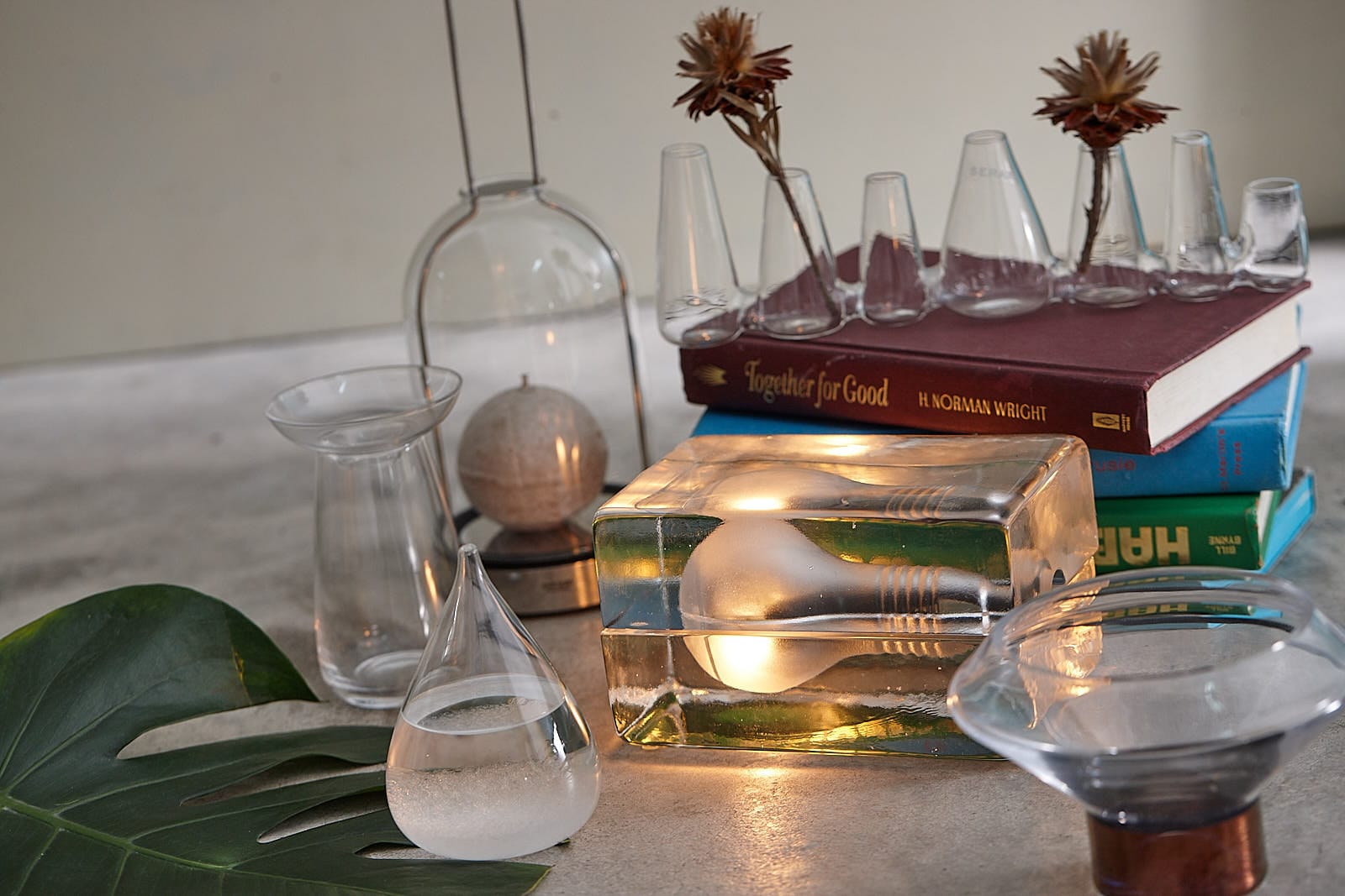 來自日本的TEMPO DROP天氣球,將小說中的神祕玻璃球實體化。密封的玻璃球注入精算過的酒精、蒸餾水、樟腦等原料,可以隨著天氣狀況,產生各種型態的羽毛結晶,讓居家擺飾也能與大自然的變化一同起舞。