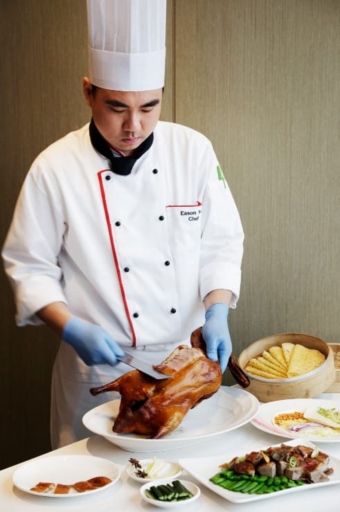 除了藝術饗宴豐富視覺感官外,同時敘日全日餐廳、粵亮廣式料理、The Lounge季節茶飲及酒品,另有宴會會議廳等,讓旅客滿足多元且精緻的味覺享受。今日最推薦粵亮廣式料理的「粵式猴賽雷亮皮鴨」。主廚特選花蓮養殖重達三公斤的櫻桃鴨,經過層層手藝、費時費工、打造出表皮酥脆、香氣十足的烤鴨,烤鴨三吃包含片鴨,搭配首創以南港區花桂花製作的烙餅,飄著淡淡桂花香,以及主廚桌邊現做的避風塘鴨比薩,必點美食值得預約錯過可惜。