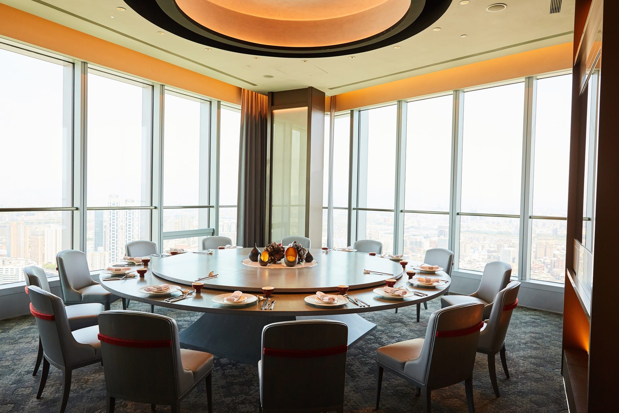 火熱油亮的粵式菜餚,讓香味漫溢整個空間,騰騰白煙交織著色相鮮明的食材,一再勾動著饕客味蕾。四周窗景可俯瞰整個新北市區,同時將霸氣景緻與盤中珍饌盡收眼底。