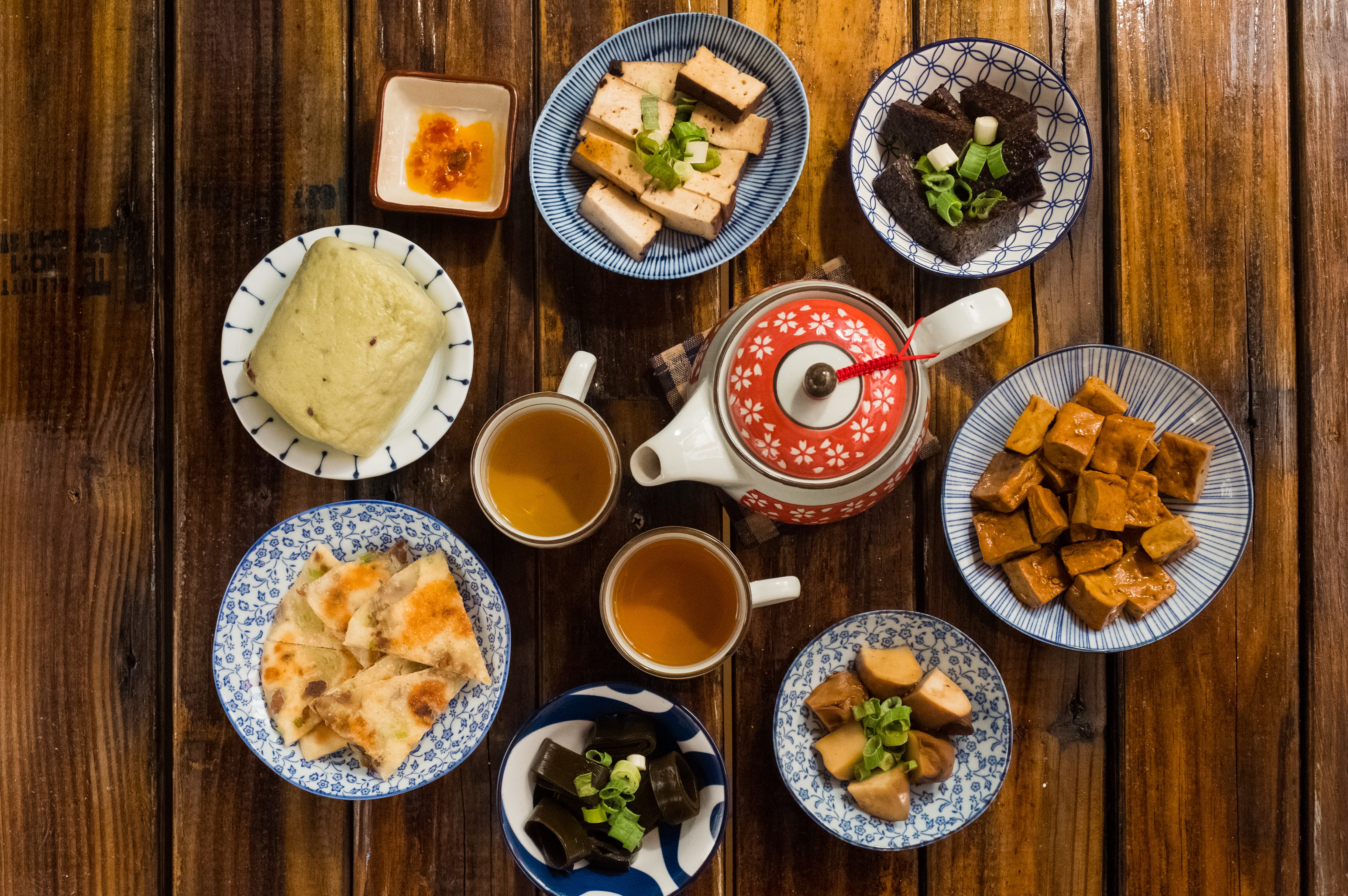 士恩說,他打從一開始去台北討生活,就是為了學些技藝回來澎湖過日子,草根二字體現了堅韌的澎湖人精神和他回故鄉的決心。士恩運用過往在餐飲業的經歷,研發出十多種漢方草本調製的溫和滷汁,其中豆干加入研磨的辣粉,是最受青睞的品項;嗜喝茶飲的他也調製了各種養生茶,草根紅茶由洛神花果、玫瑰花果調和,意外撞出懷念的古早味。手作饅頭和假日限定的米飯,則是士恩媽媽的手路菜,家常味包裹著全家人的待客之道,與暈黃燈光一同溫馨蔓延。