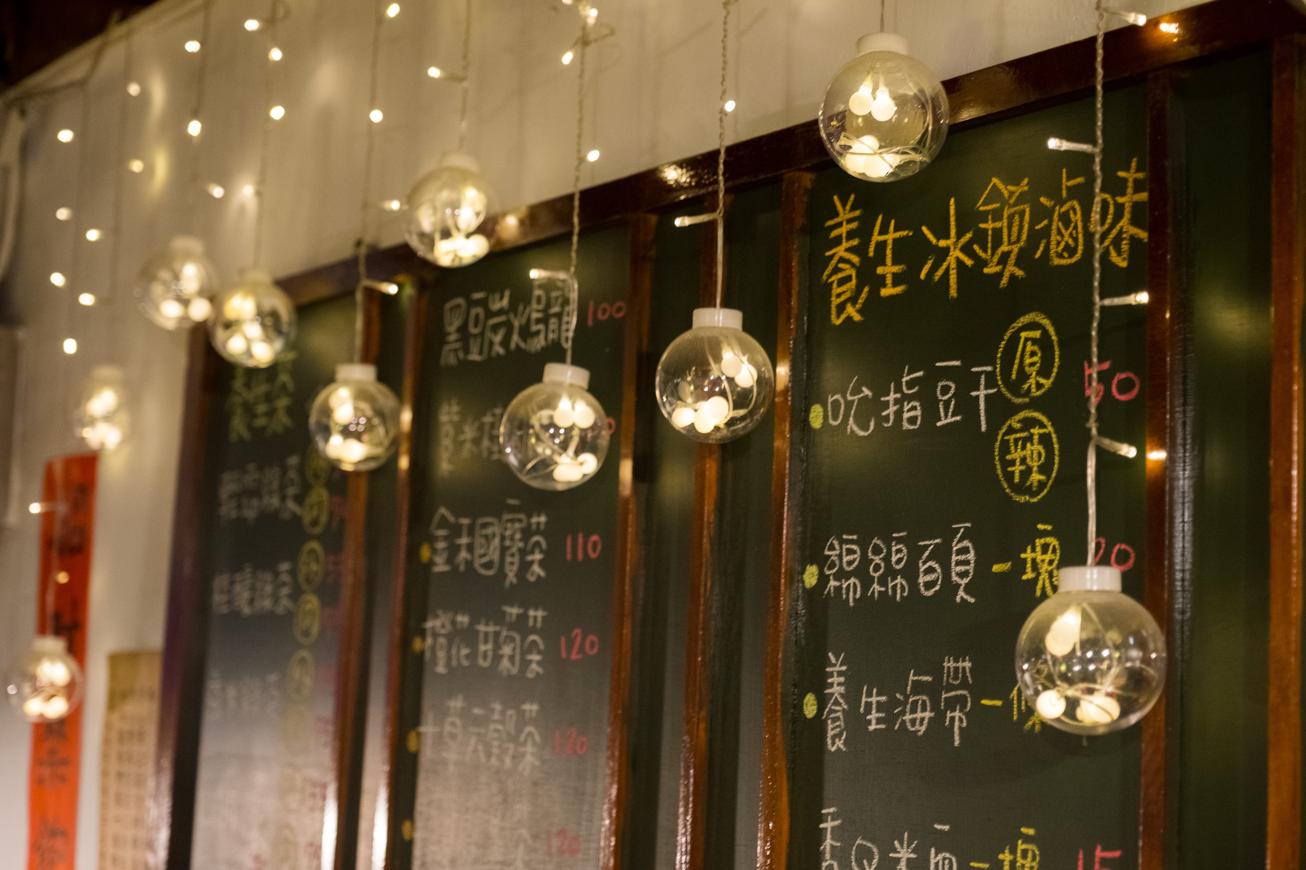 「草根果子」從下午營業至凌晨12點,幾樣冰鎮滷味配上一壺養生茶,暖了深夜的胃。方才瞧見的那顆月亮,原來是盞桌燈,當它亮起,就代表老闆晚餐吃飽了,聽到這理由著實愣了一下,但就是老闆的真性情、和店裡各種角落的有趣小故事,成為驅使人前往拜訪的原因。