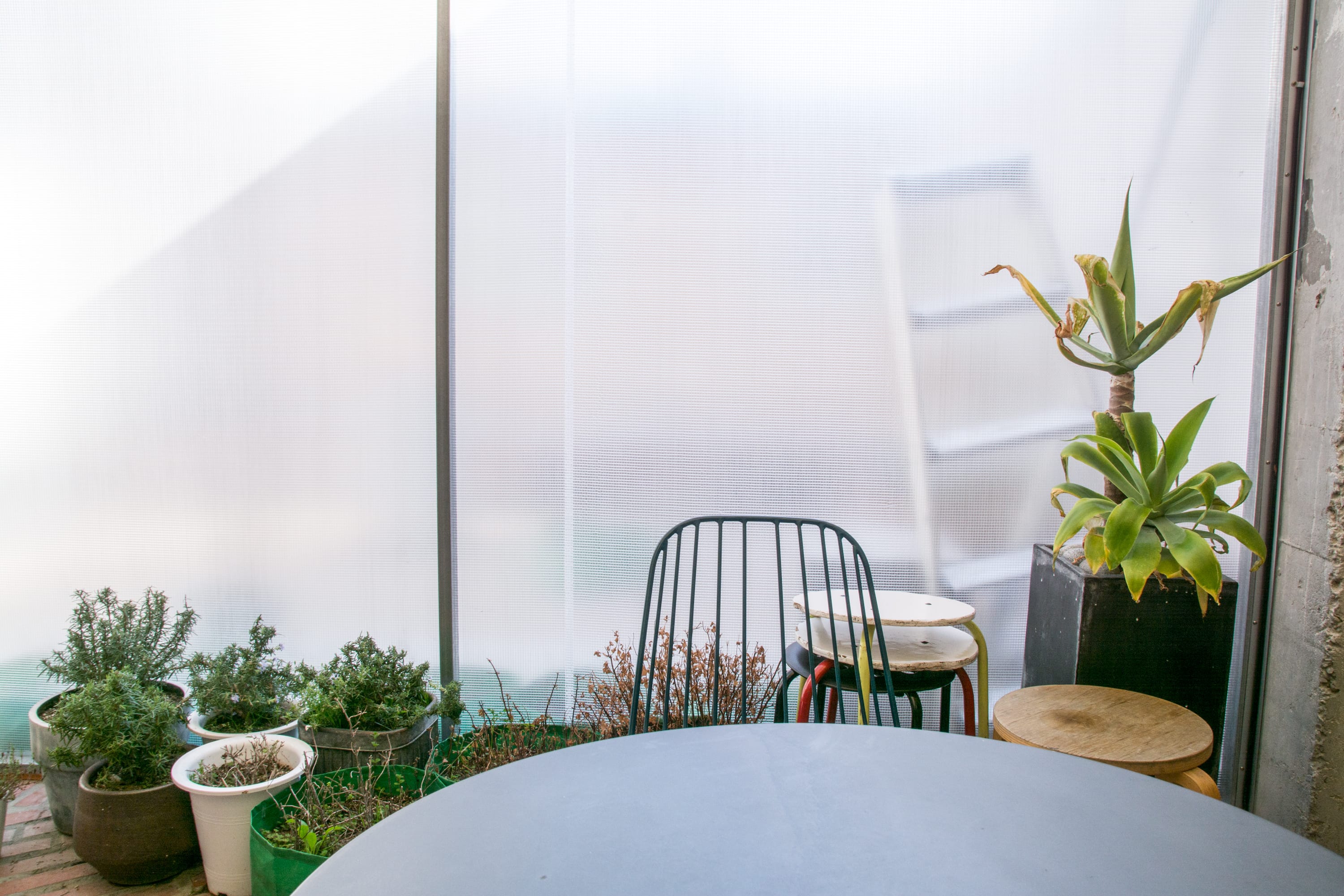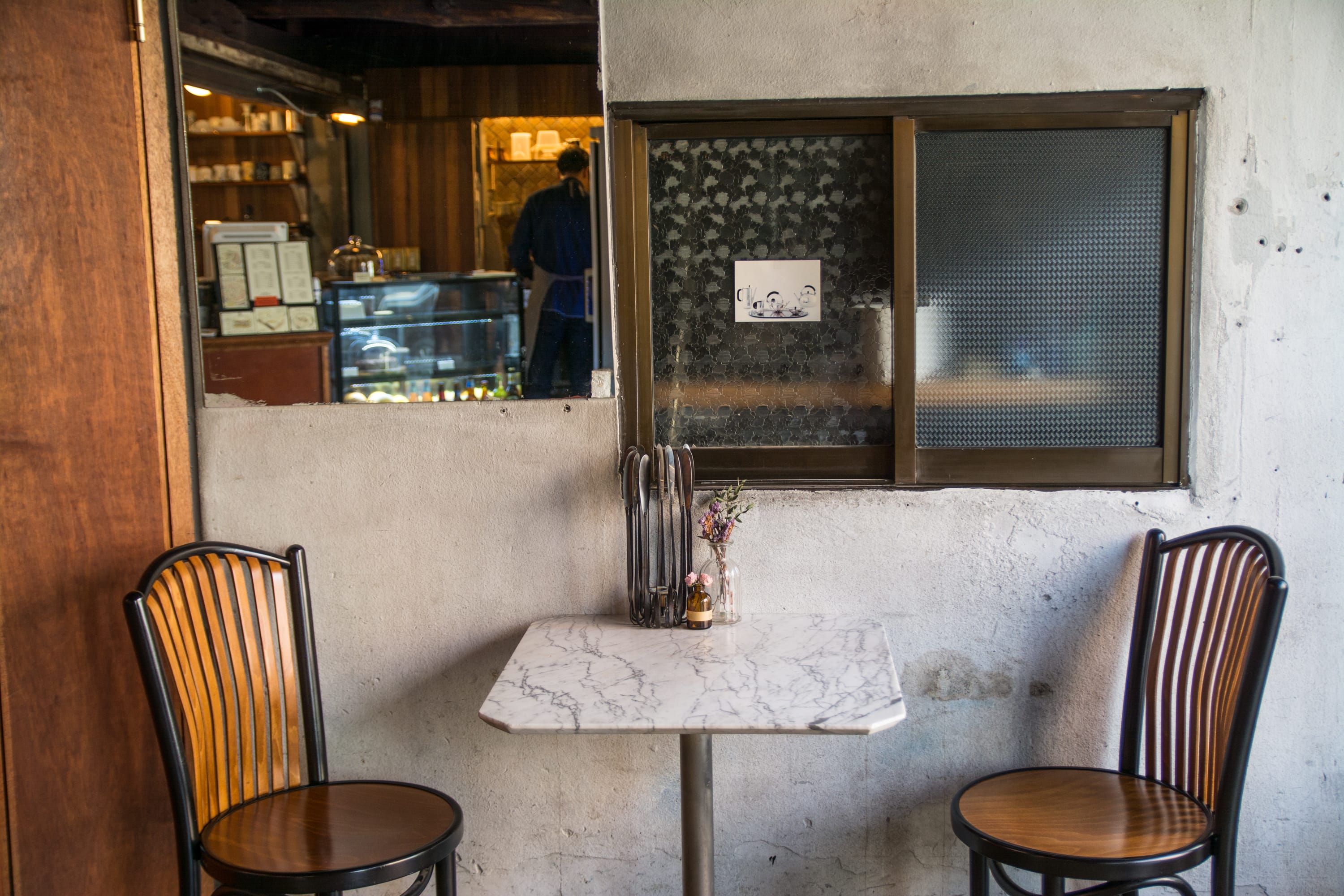 店內有許多Instagramer喜歡的大理石座位區,與黑褐色邊的桌椅、鮮花束搭配出復古浪漫的氛圍。可以特地坐在沒有天花板的區域,天氣好時,抬頭便能看到朱紅色的牆面與藍天。穿過小小的庭院,來到後方的用餐區,設計上有點像是帳棚的樣式,兩側的牆面則以水泥跟紅磚牆來展現自然隨性的感覺,再加上可愛的多肉植物盆栽放置在附近,彷彿置身在美好的溫室花園。