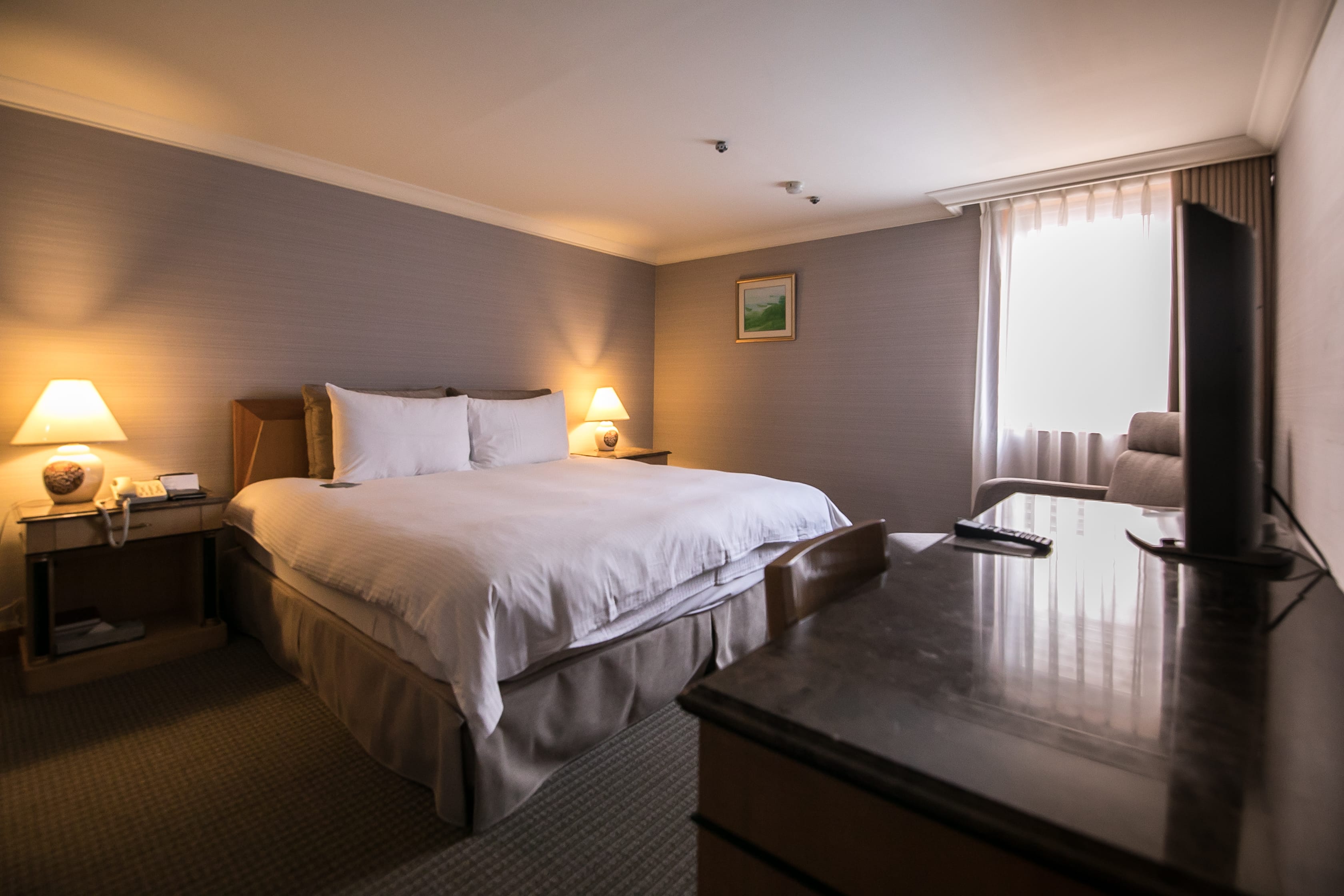 是飯店,也是具有人文氣息的藝術殿堂。轉入客房,每層梯廳與廊道,處處可見國內外的藝術畫作與工藝品,伴隨著旅客來來往往、駐足眼光,已有四十幾年歷史,連那個年代的消防器材,也成為裝置藝術的一部分,甚為有趣。