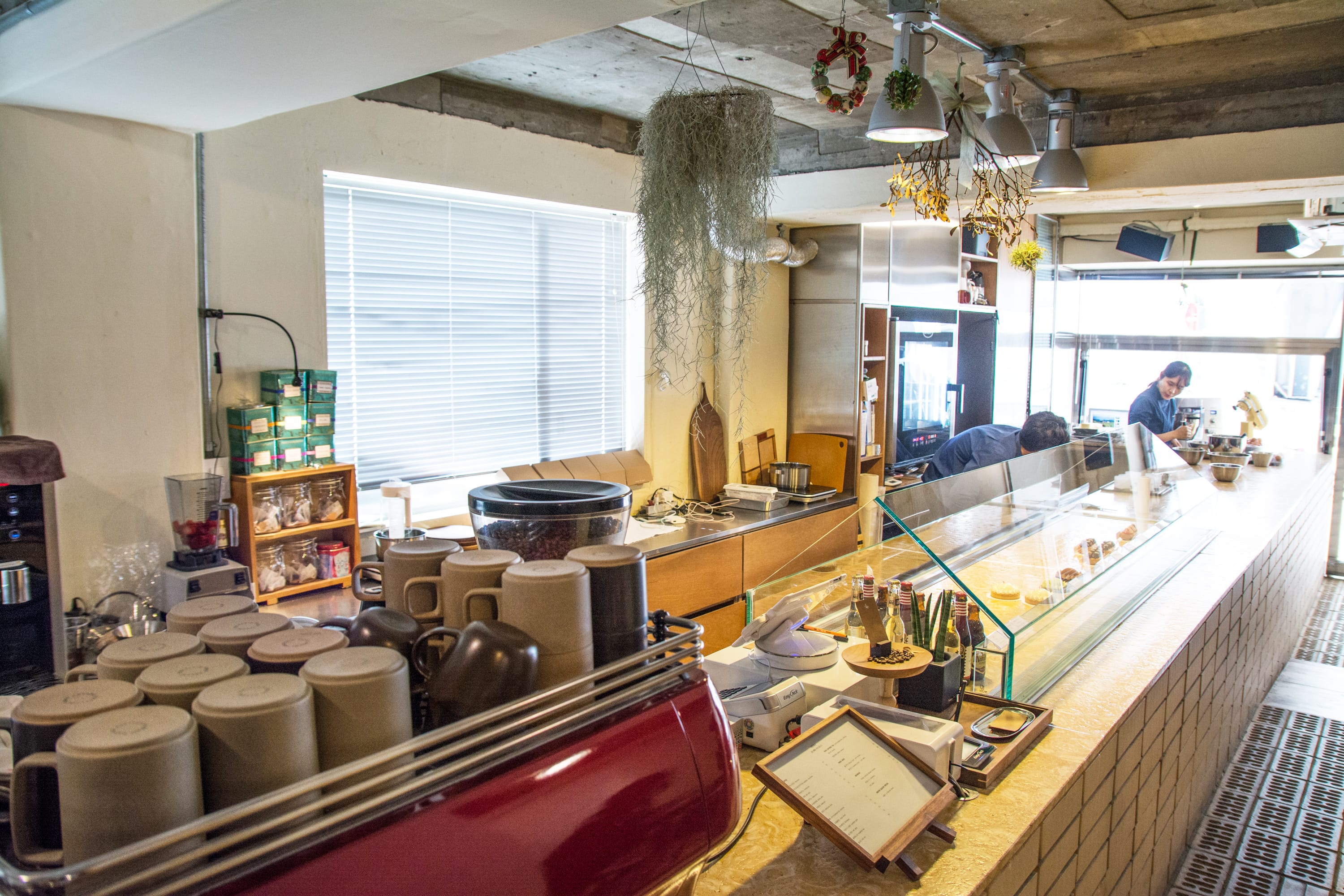 Sous le gui店外觀很有金屬感,還真不太能與可愛的閃電泡芙聯想再一起。整間店風格很簡約,擺了不少綠色植物盆栽,來到後方區域的被樹木、盆栽圍繞的座位區,感覺十分溫暖無距離感。