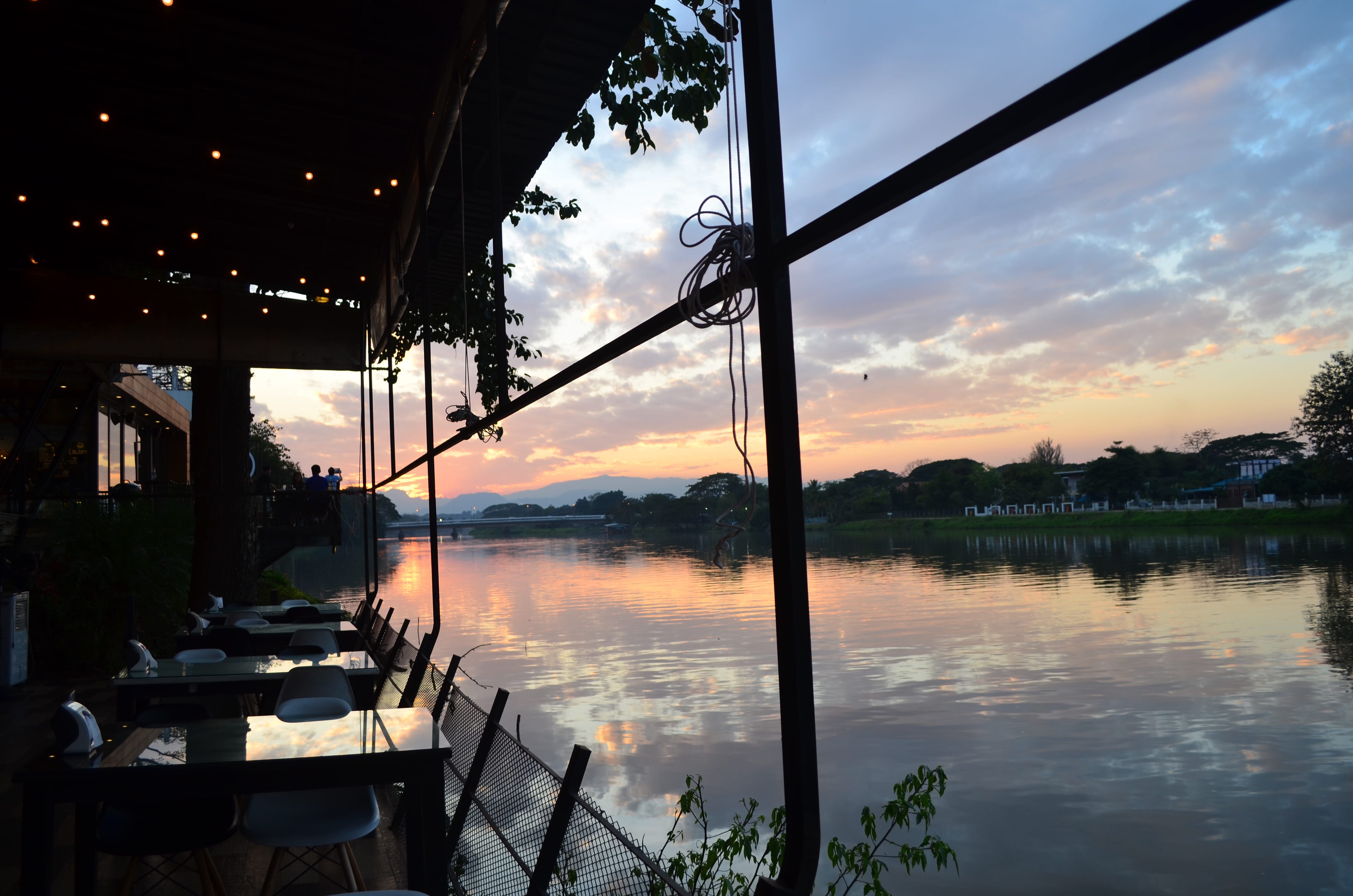 傍晚時刻,沿著郭河(Kok River)來到De Lanna Riverfront河岸餐廳,享用泰北料理的風味,一旁就是河邊波光粼粼的閃爍光暈,倒映著天際夕陽的漸層色彩,像是日落沉入了湖面裡,連成一幅幽靜嫻雅的風景畫。