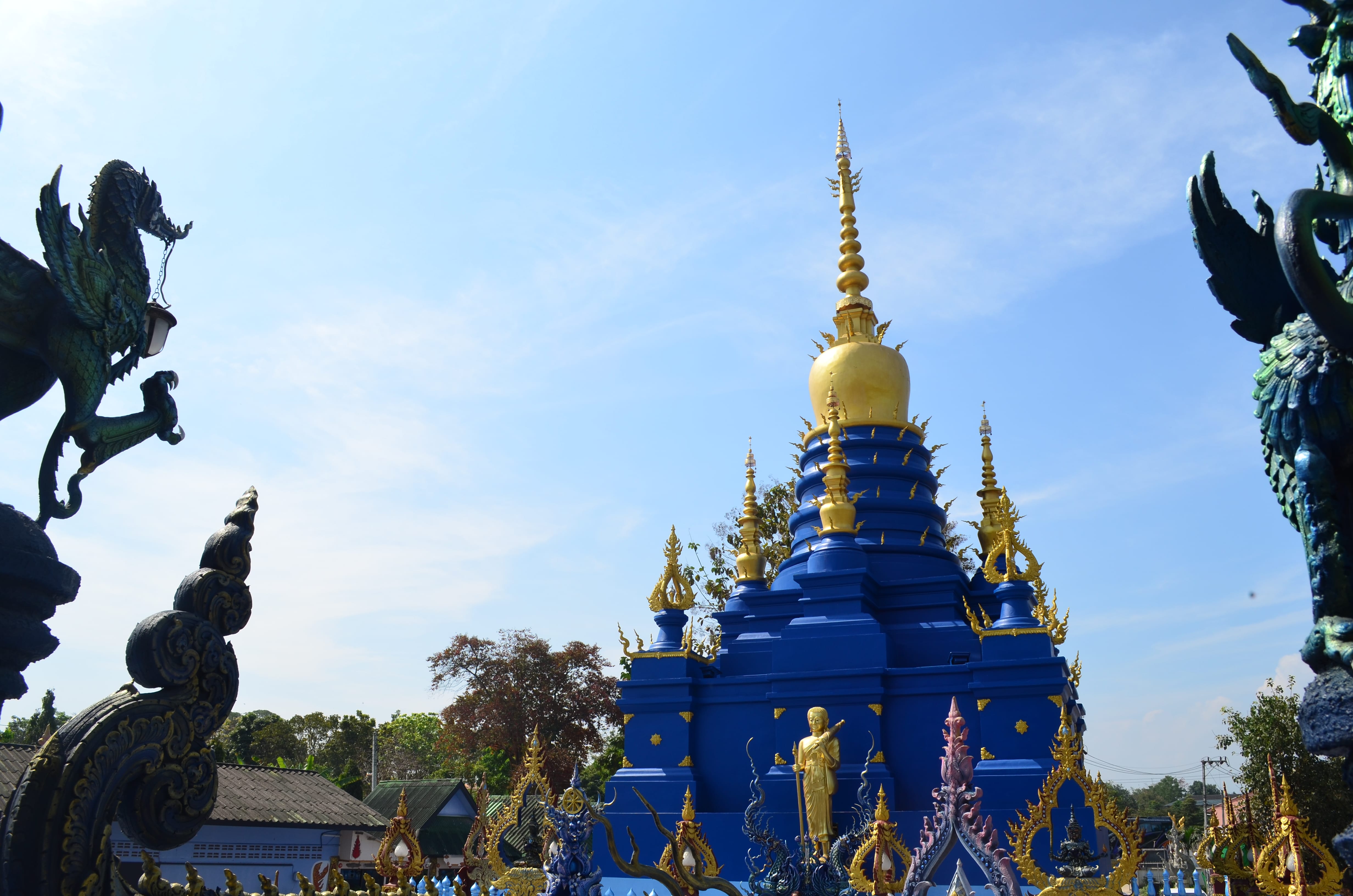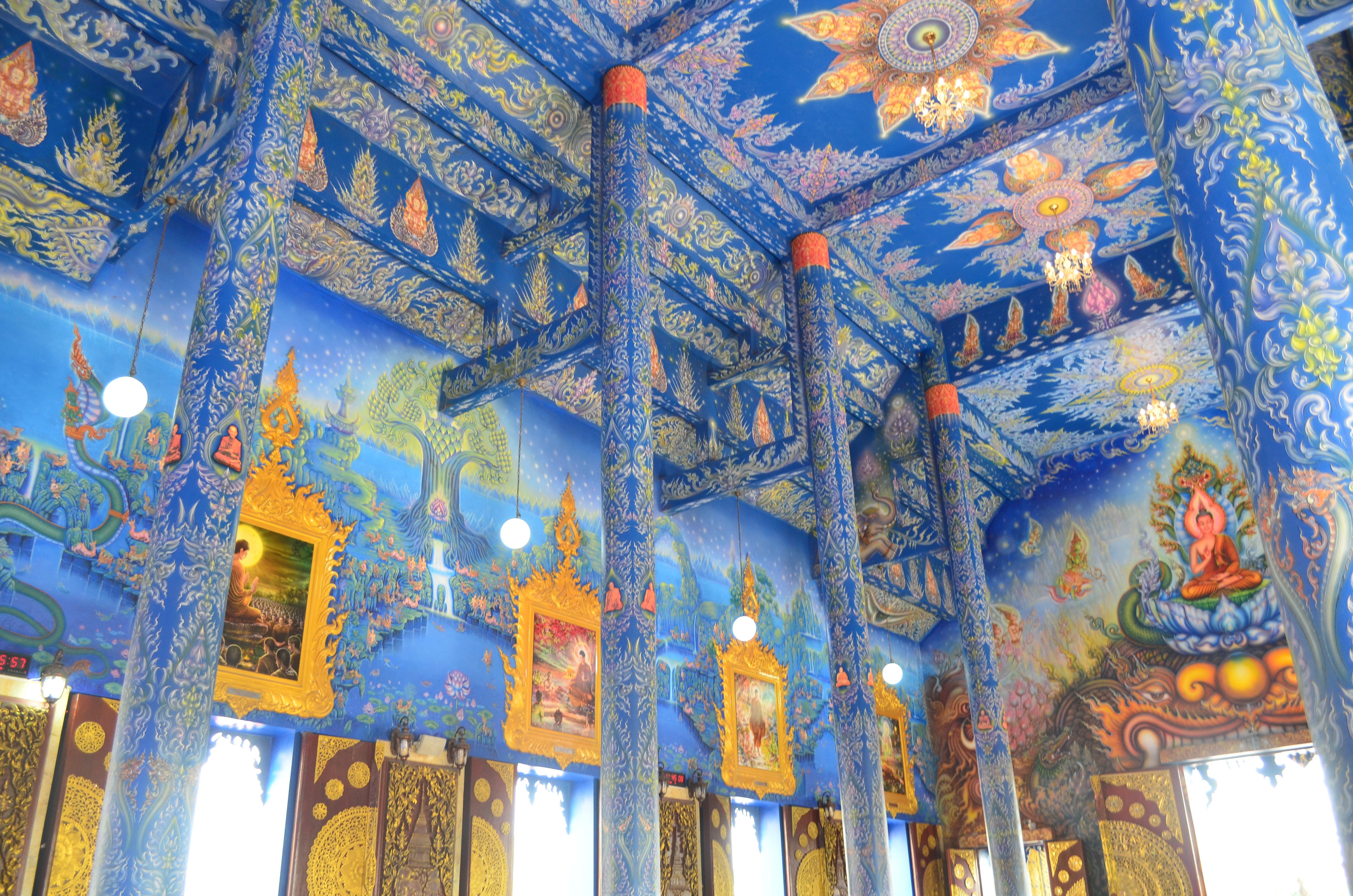 廟宇是泰國文化中非常重要的角色之一,對多數人而言,廟宇外觀的既定印象可能停留在前幾個世紀流傳至今的傳統建築,但位於清邁北邊的清萊古城,相當著名的白廟、黑廟與藍廟,皆出自於藝術家之手,結合藝術美感與宗教文化的建築風格;除了黑廟屬於博物館;白廟與藍廟既是廟宇,也是藝術品。相較於白廟與黑廟的名氣,藍廟更富有神秘色彩且顯為人知,由白廟藝術家的後輩藝術家的後輩Phuttha Kabkaew所設計,雖然規模相對小,但僅有的兩棟建築就足以讓旅人到達另一座奇幻空間,感受廟宇展現的各種藍色彩繪之美。