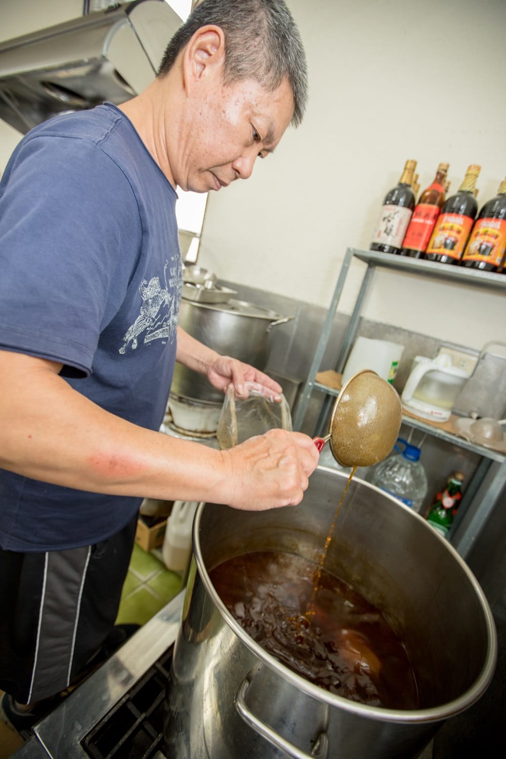 「龍記尚品牛肉麵」僅此一家,別無分店,就像日本職人的精神,老闆陳學良要求品質完美,近30年就專注這一味,守住這一家。牛肉麵要好吃,當然湯頭最重要,陳老闆日復一日每天一大早備料煮鍋、耐心熬湯,一鍋至少26公斤以上。陳老闆說:「我們的高湯一定當天熬煮,絕不放隔夜,為得就是要讓客人吃得更健康。」