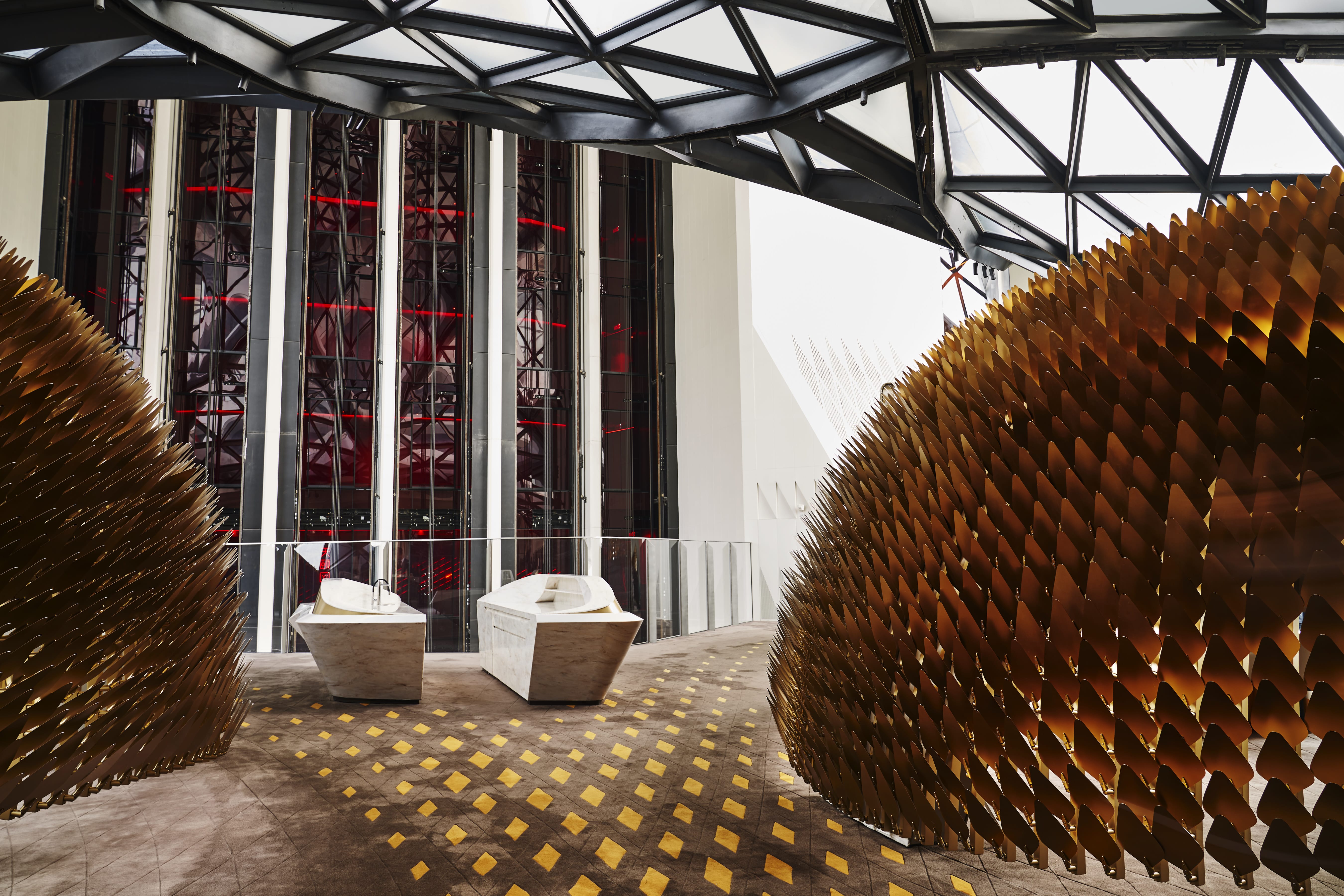 新濠博亞娛樂首個全權發展及創立的酒店品牌,摩珀斯為澳門頂級奢華之酒店建立了全新標準,箇中呈獻一系列獨一無二的「全球首創」項目。酒店為全球首座採用自由形態外骨骼結構的摩天大樓,突破了多項建築技術,由內至外皆展示舉世無雙的建築奇觀。