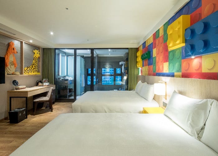 全台唯一攜手宜蘭「積木博物館」打造的「Brick Room泊麗客」主題客房,由積木老師把房間布置成3D立體積木動物牆,還有積木檯燈、積木矮櫃,色彩繽紛,凹凸有緻圖案,踏進房間好像住進遊樂園,讓人驚呼連連!於開幕期間住客可享《初探兆品 試營運專案》房價3.8折起優惠,雅緻雙人房平日僅$3,899起、雅緻家庭房僅$5,999起,《探索.泊麗客住房專案》,入住家庭房享平日只要9,999元、假日11,999元的驚喜價。
