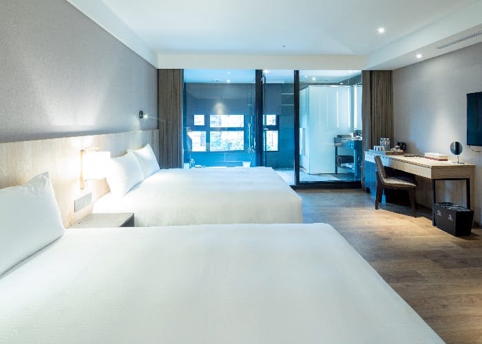 不論是以木質素材配搭淺色元素,打造慵懶度假氛圍的雅緻雙人房或是雅緻家庭房,每個房間都有泡湯池,讓住客可以在附近逛街買物之餘,隨時進來房間浸泡在獨享的泡湯環境,打開水龍頭,即能浸泡在溫潤膚質的原汁湯泉中。兆品礁溪每種房型皆配備高規格的TOTO免治馬桶,泡湯完畢泡杯酒店貼心準備的普洱茶球,以上好的茶湯為旅人洗滌塵囂。