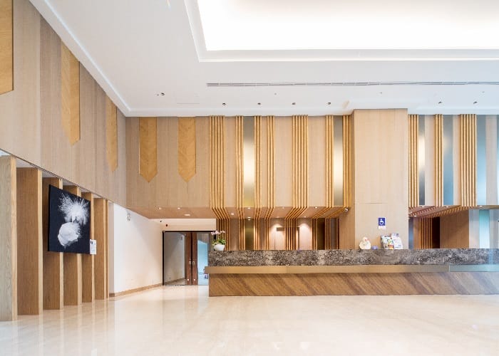 兆品礁溪共有173間客房,全館使用無毒油漆和無毒裝潢貼皮,雖剛落成卻無一般飯店新館所散發的刺鼻味,大廳裝潢使用大量木頭元素,座位區為訂製的鵝卵石造型沙發組,流露出舒適放鬆的自然風。