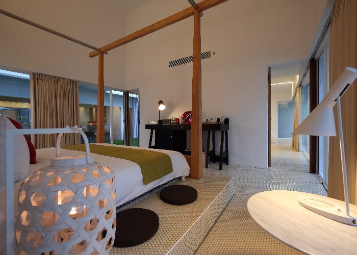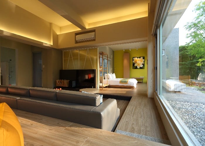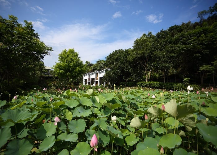 最令人心之嚮往的就屬水間玻璃屋Villa。以白色為基調,70坪環繞生態池的獨棟庭園式別墅,房間兩側整排為大面落地窗戶設計,從戶外遙望猶如坐落水間的玻璃屋,寬敞的客廳、臥室更加自由隨興,半戶外浴室設計巧妙與自然融合,還有戶外泡澡池、蓮花依畔和發呆平台,這就是度假的極致享受吧!