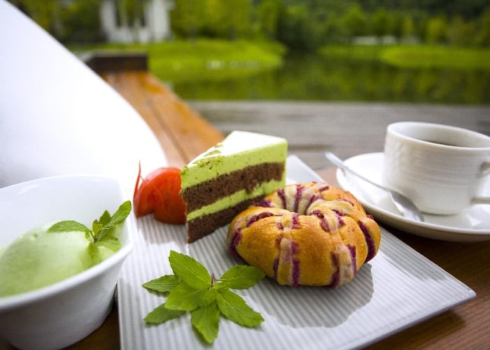 最棒也備受寵愛的沐浴時光。備品為寶格麗三件式香水沐浴用品、貝氏牙刷,還有特別準備的日式和服。而身為台灣香草協會理事的Peter與Grace非常懂得香草療效並親手栽植,可先享受茶樹蒸氣之後,再躺在日式風呂的超大山泉浴池,沉靜於檸檬草浴,身心完全舒暢,難忘這感覺,翌日特別起個大早,面對綠蔭湖綠光景又再泡澡一次,「哇!人生想追求的幸福時刻就是此時了吧!」