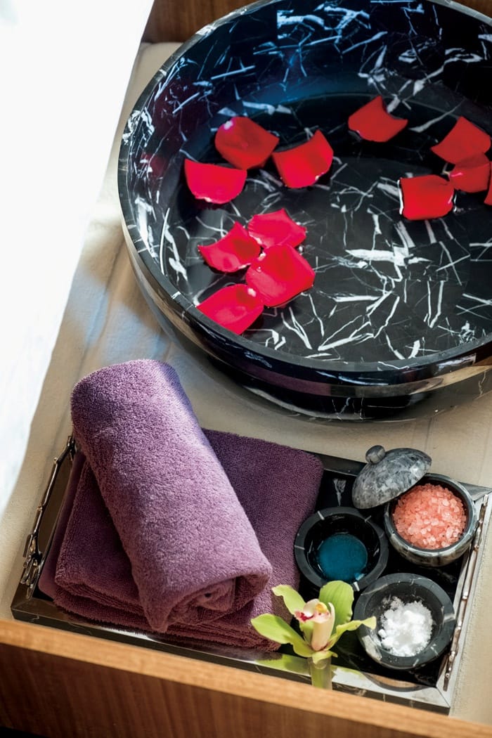 來到澳門瑞吉酒店,可不能只有待在房內享受管家服務,位於38樓的銥瑞水療中心以「寶石」為護理概念,研發6種以寶石為靈感,帶有獨特香氛按摩精油,可依據身體狀況及需求挑選最適合的寶石,護理療程啟動之前,還有經典特色茗茶及浴足儀式,一連貫的寵愛呵護,讓鮪魚徹底舒緩了工作時壓力疲憊。光是這樣還不夠,來到頗負盛名的瑞吉酒吧,點一杯由澳門瑞吉酒店對於經典血腥瑪莉獨特演繹的「東方瑪麗」,融合代表東西文化的元素,匯聚了鹹、香、酸、甜、辣等多層次風味,打造出融合中西味蕾的精采調酒。或是呼喚調酒師到桌邊,提供專屬品味服務,將經典Gin & Tonic以意想不到的組合迸出全新滋味,也可以嘗試新推出的「紐約、紐約」之夜,包括以紐約為主題的The Big Apple、懷舊Old-Fashioned,搭配紐約車打芝士牛肉小漢堡等美式小點,身心暢享舒適地寫意空間,也滿足了口腹之慾,為澳門瑞吉住宿體驗畫下完美的句點。