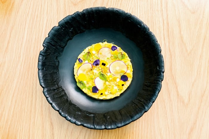 侍者推著餐車在桌邊服務時,炭烤香與肉香撲鼻而來,鮮嫩不帶血水,飽滿肉汁與馥郁油脂在口中相互交融,鮮甜味美,這就是熟成牛肉的魅力。盛焰提供4款來自不同國家的牛排,包括日本、美國、法國、澳洲,有趣的是,上桌時還會搭配不同國家的精美牛排刀供客人挑選,讓用餐體驗更加臻美高貴。