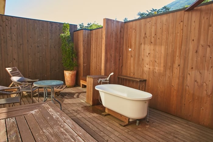 主廚在開放式廚房現場烹調,使用來自米子和境港的新鮮螃蟹、魚鮮,搭配來自周遭農園的鮮採蔬菜,從前菜的醃海扇蛤,到主餐的鮮魚鐵板燒、大山和牛等,在盤中描繪山海交織的豐饒景色。客房採古典歐風設計,而且均有一座寬敞開放的露天浴池,在露天按摩池伸展四肢,細數不受光害汙染的滿天星辰,清晨時還有鳥兒到窗前唱著奏鳴曲,大山的清新魅力融入在旅館內的每一刻。