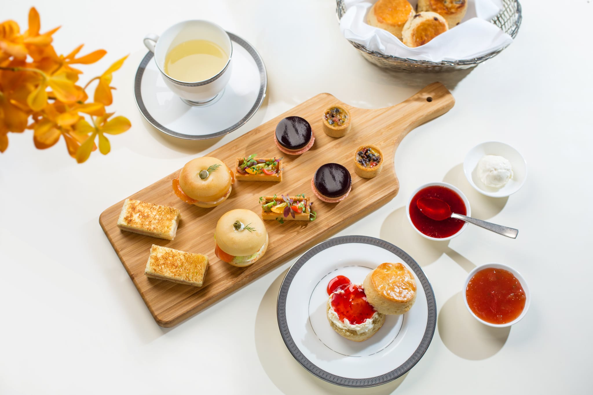 除了上述讓人回味無窮的精品級美點外,賓客還可享有外皮香酥內鬆軟的手工傳統英式司康和美味可口的精緻鹹食拼盤(乙份),內容包括迷你燻鮭魚起司貝果、黑醋栗鴨肝馬卡龍、彩椒磨菇鹹派、酪梨番茄塔及法式松露三明治,同時滿足兩個挑剔的胃!