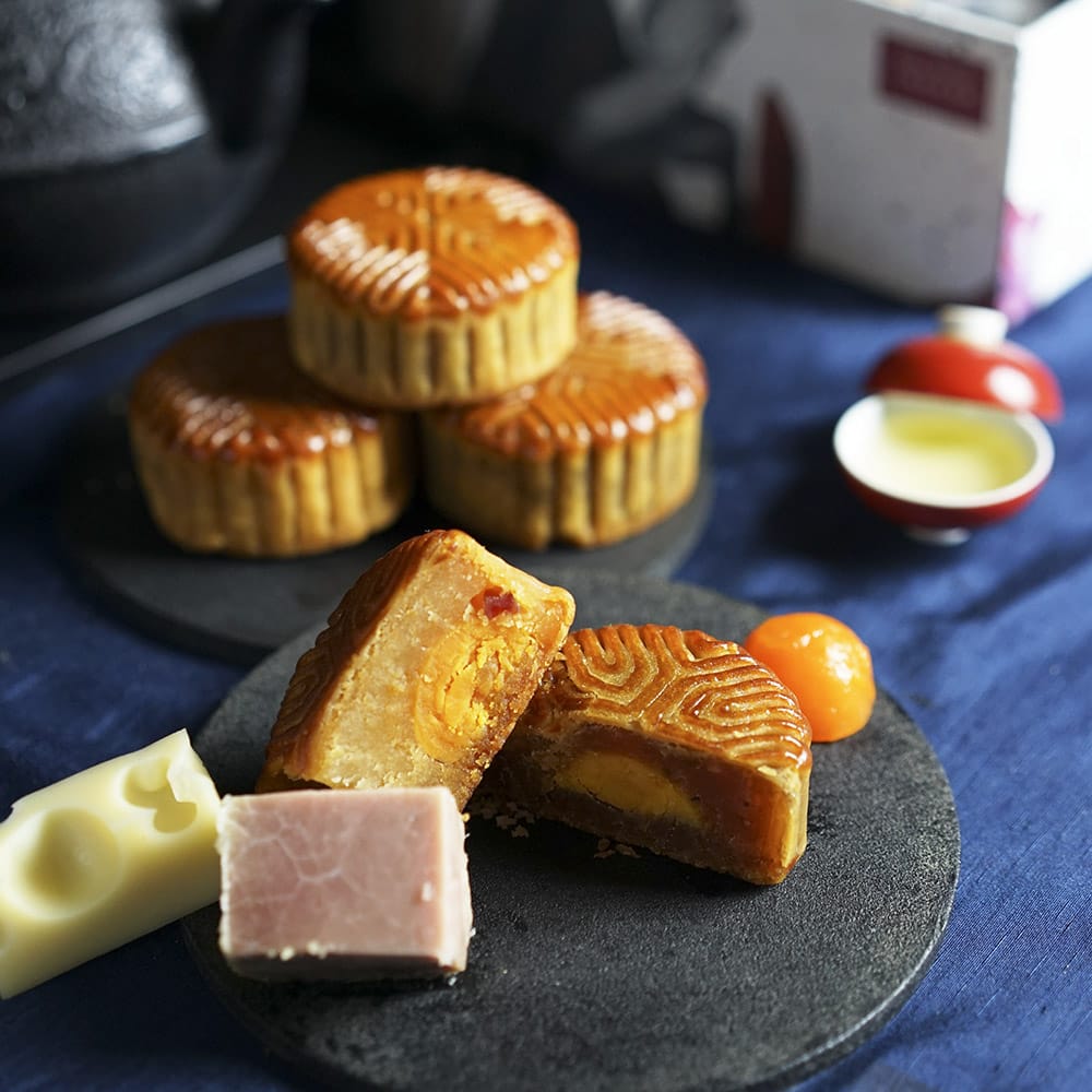五星主廚團隊監製改良傳統奶黃月餅做法,將法式松露口味和千層酥皮月餅相結合,口感滑潤,層次分明。低油酥皮與鬆柔芝士奶黃穠纖比例相融合,定溫烘烤,低卡少負擔。松露迷人香氣融合滑順口感,滋味驚艷,送禮首選。