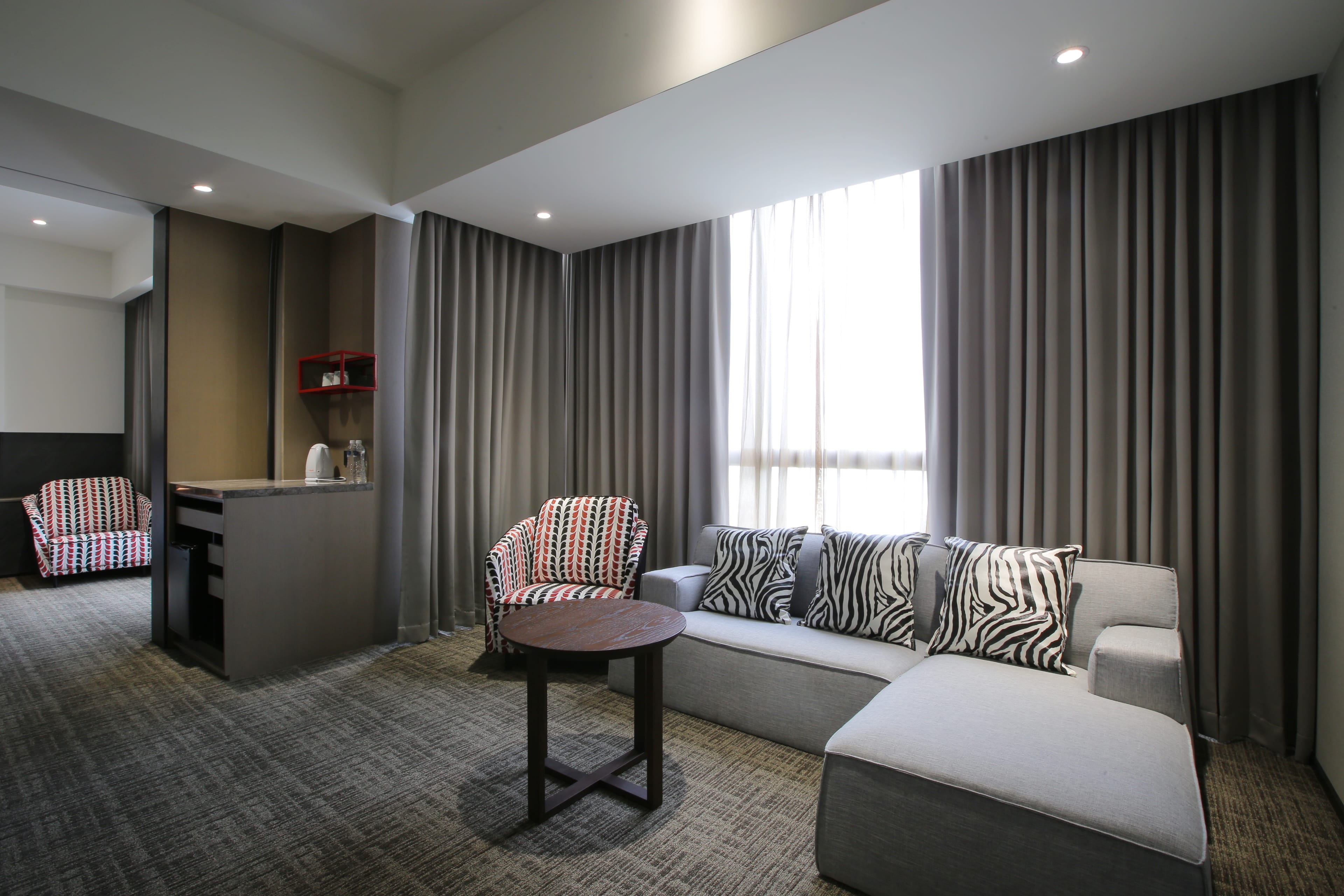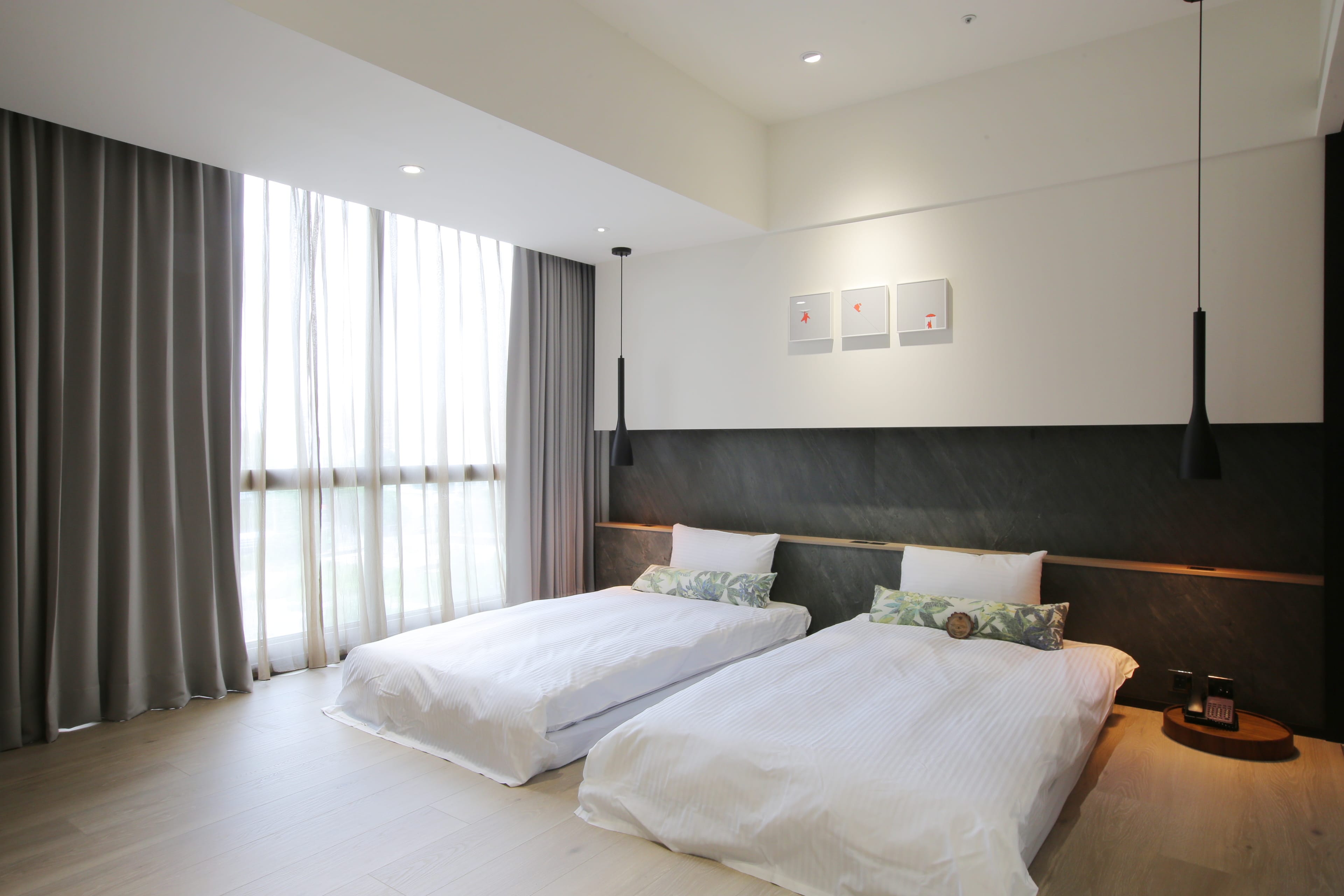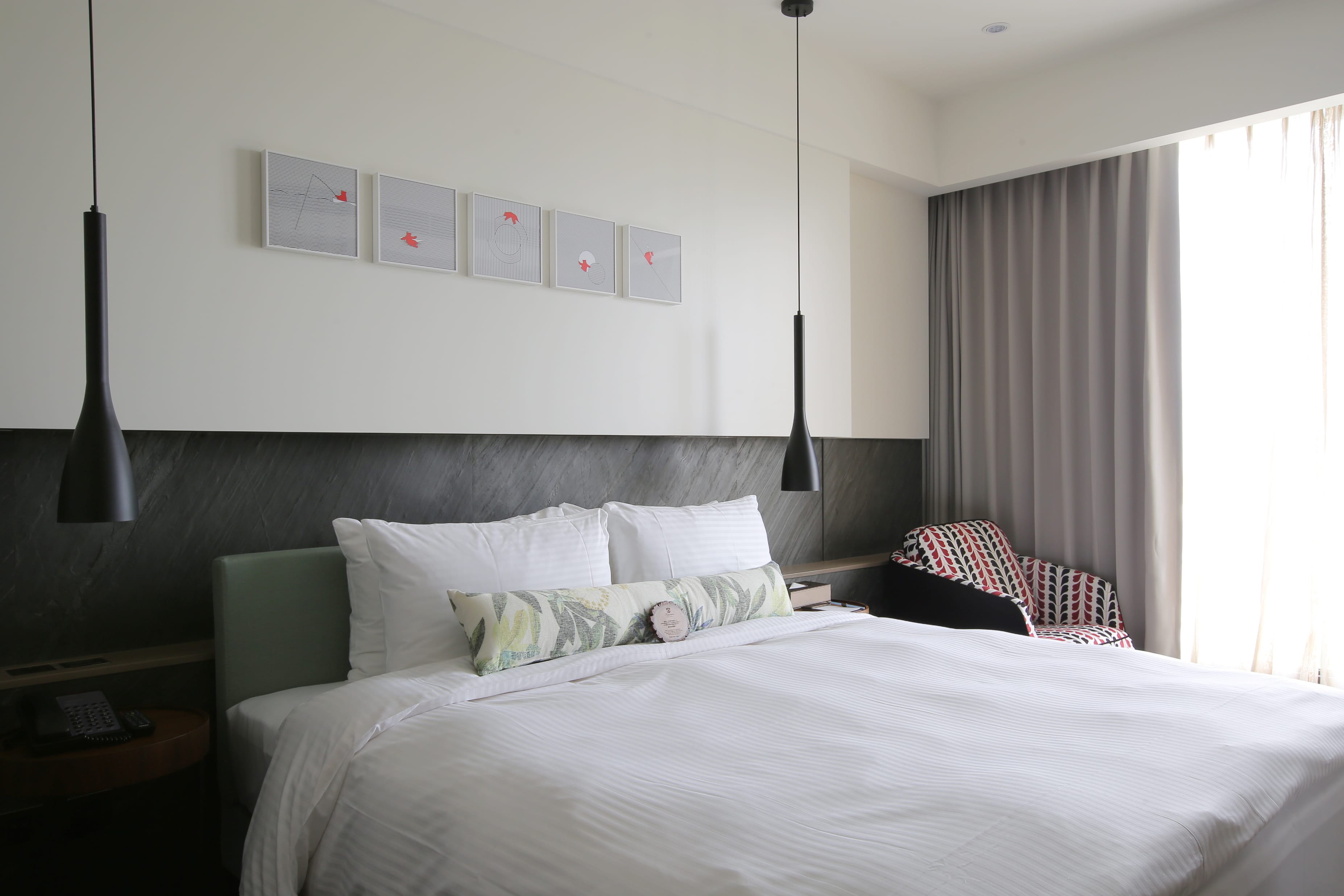 透過「森」度旅行的自然概念延伸,可以看到嘉義市花「艷紫荊」、嘉義公園的一景化身成飯店內的藝術品裝飾,客房廊道的地毯飾以飛鳥蹤跡圖騰,空間轉折處,不期而遇的驚豔。總共有175間會呼吸的客房,8種房型因應旅客需求選擇,整體空間簡約時尚,大面落地窗引景入室,挑高與寬敞的設計,讓住客能充份休息並有安穩的睡眠品質。賦予小巧思的是床頭牆面皆有小熊各式姿態、各種顏色的掛畫,還有床上的原木說明牌,繪有動物、旋轉木馬圖案的馬克杯,在在讓人愛不釋手。