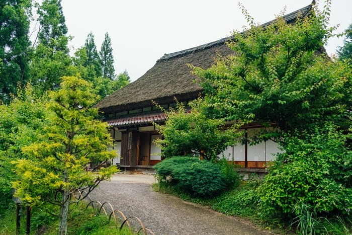公園內復原昭和初期的農村生活,古老的木造農舍旁,水車低溜溜地輪轉著,梯田呈現四時遞嬗的風景,喝杯免費招待的熱茶,在廊緣納涼休息,彷彿融入古老的農村生活中,閒散而愜意。