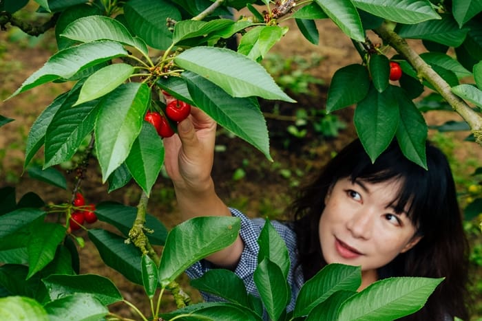 配合季節,果園內種植草莓、櫻桃、水梨等十數種水果,樹梢上結石累累的新鮮水果供遊客自由採摘,還可以邊採邊吃大快朵頤,園內並有自製水果漢堡等多種DIY體驗。