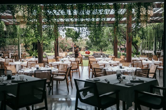 夜晚華燈初上,將餐廳染成一片祥和的樣貌,無論是高雅矜貴的室內用餐區,或是能夠享受峇里島微風的戶外沙發,都叫人深深陶醉其中。