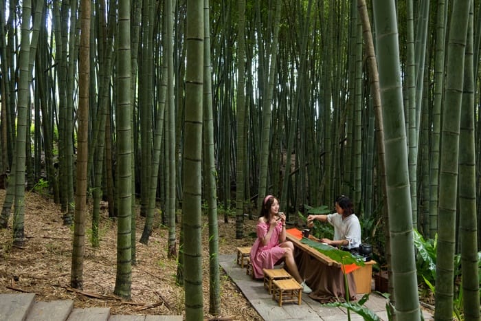 蟲鳴鳥叫、蟬聲唧唧,風拂過竹葉,沙沙地唱和著,也拂去旅人一身襖熱暑氣。在竹林裡與茶藝師對坐,享受這般歲月靜好,品嘗一杯好茶、一碟手工茶點,接受大自然由裡到外、從頭到腳的純淨洗禮。