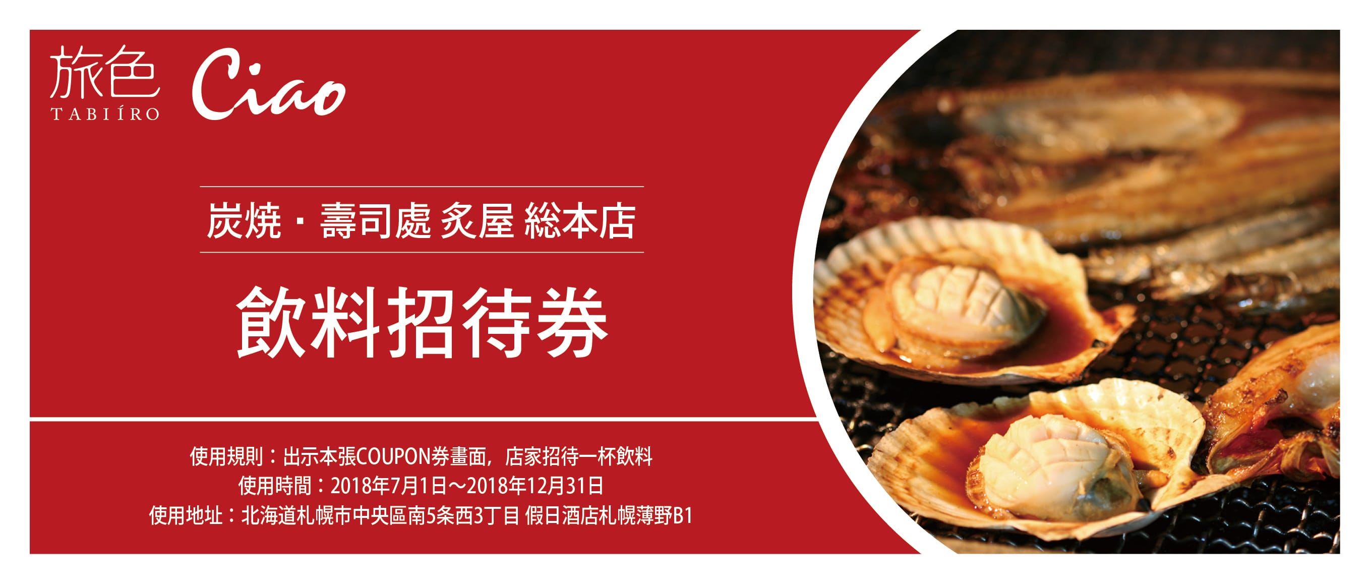 炭燒‧壽司處 炙屋 飲料招待券