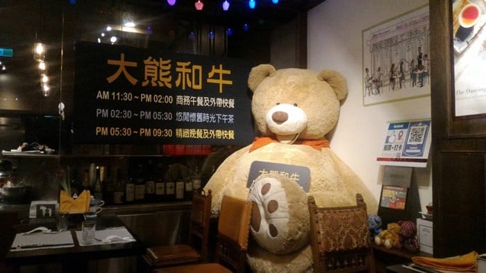 近捷運雙連站2號出口,「大熊飽殿 和牛Meat Bear」首佔地利之便。其外觀很復古,原來是由百年台鐵宿舍所重新整修過。進入一樓店內,就看到一隻好大好大的布偶熊歡迎來訪,頓時整個心情更加放鬆。