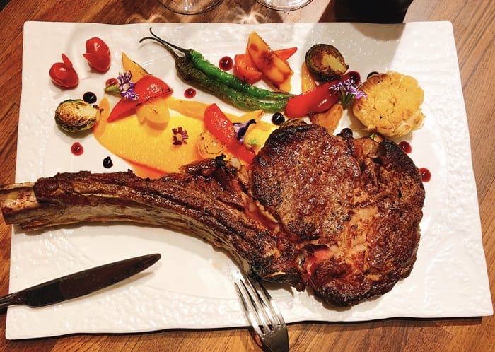 復古卻富新意,「大熊飽殿」賣得是大家最愛的美國牛排、日本和牛、海鮮排,義大利麵(燉飯)簡餐和下午茶等,分為套餐和單點,尤其是戰斧牛排和日本和牛價格卻很親民、平價,超吸引人。劉執行長說取名「大熊飽殿」,就是希望讓大家在此無拘束感,可以吃得很飽,比市面上更便宜的價格能夠盡情享用和牛。原來股東們本身就是牛肉推廣商、進口商,與美國肉協、日本當地小農關係良好,熟知當地肉品市場,因此得以回饋給台灣饕客。此外,特聘專門切肉的師傅,俐落手起刀落除油修肉的功夫亦是店裡自傲之處。