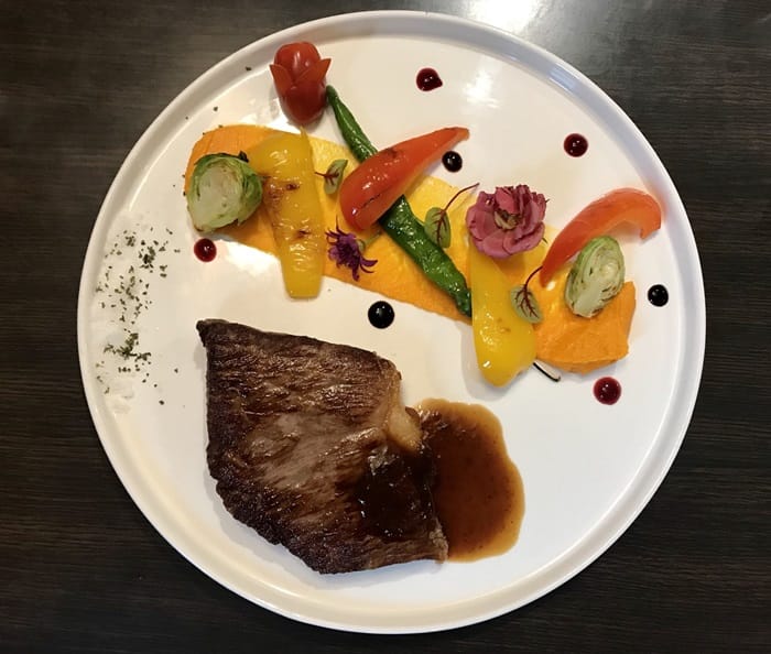 從沙拉、前菜、湯品、麵包到主菜、每一口吃得到餐廳的用心。像是櫻桃鴨沙拉、手工製紅醬牛肉丸子;而所搭配的麵包,就特別找來今年獨得三項金牌2018KICC韓國國際廚藝術大賽,張晏瑜所做的手工麵包,全天然酵母烘焙原味製成,不添加香料,越咀嚼越有嚼勁,帶有古早味純樸味。來自日本近江A5級香煎和牛給得也很大方,這油花特香,肉質多汁彈牙,卻只要一字頭價位,完全大大滿足,相當超值。